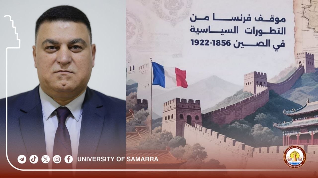 Prof. Dr. (Alaa Taha Yassin), a lecturer in the Department of History at the College of Education for Humanities, Samarra University, has co-authored a scientific book on \’France\’s Position on Political Developments in China (1856–1922)\’, published by Rataj Publishing, Printing and Distribution House in Samarra, 2025. It presents the course of the French presence in China and its transformations within the context of international competition.