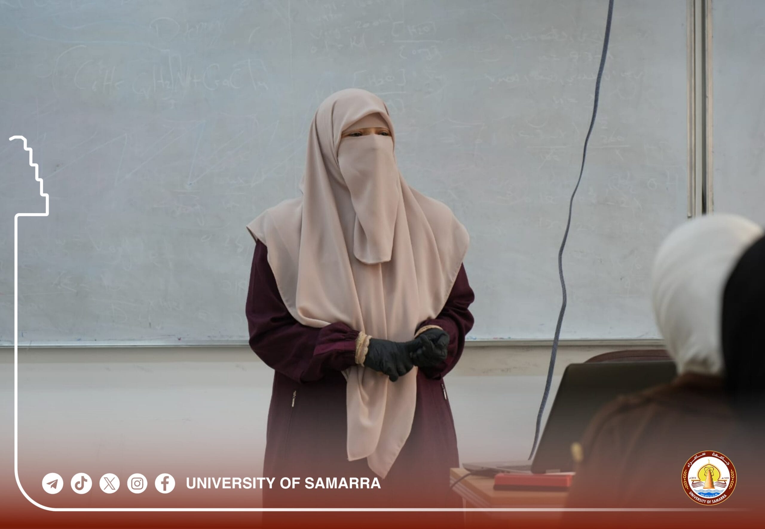The Department of Applied Chemistry at the College of Applied Sciences, University of Samarra, clarified “the development of organic diagnostic techniques over time” through a workshop presented by Dr. Esraa Ismail Saleh and Assist. Lect. Zina Mousa Mustafa.