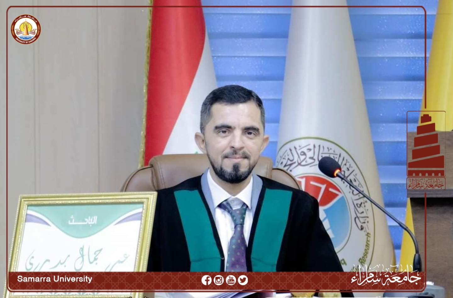 Omar Jamal Badri, an employee at the College of Administration and Economics at the University of Samarra, has obtained a Master’s degree in Agricultural Sciences from the College of Agriculture at the University of Tikrit. His thesis was titled “The Use of Different Levels of Wild Reeds, Untreated with Fiber-Degrading Enzymes, in the Physiological Performance of Awassi Lambs.”
