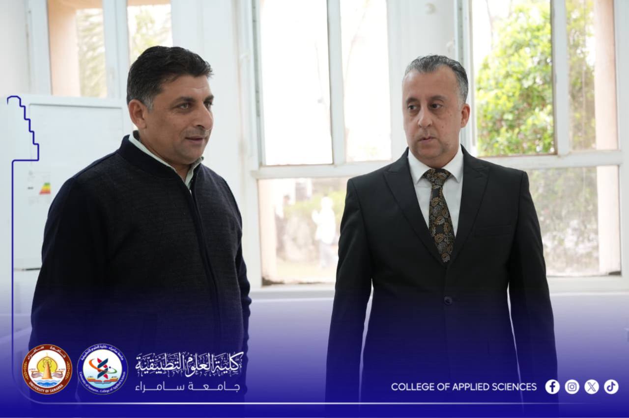 Professor Dr. Aysar Saleh Mohammed, Dean of the College of Applied Sciences at the University of Samarra, accompanied by Professor Dr. Ghassan Fares Atiyah, Assistant Dean for Administrative Affairs, supervised the ongoing maintenance work in both research and undergraduate laboratories.