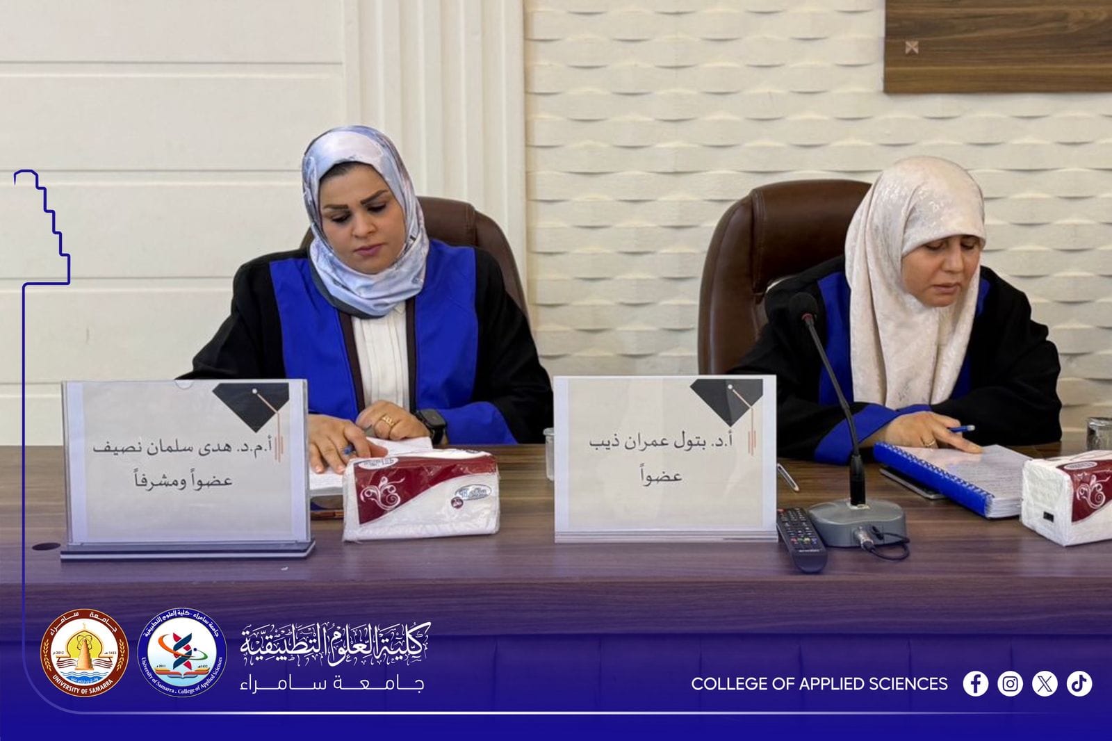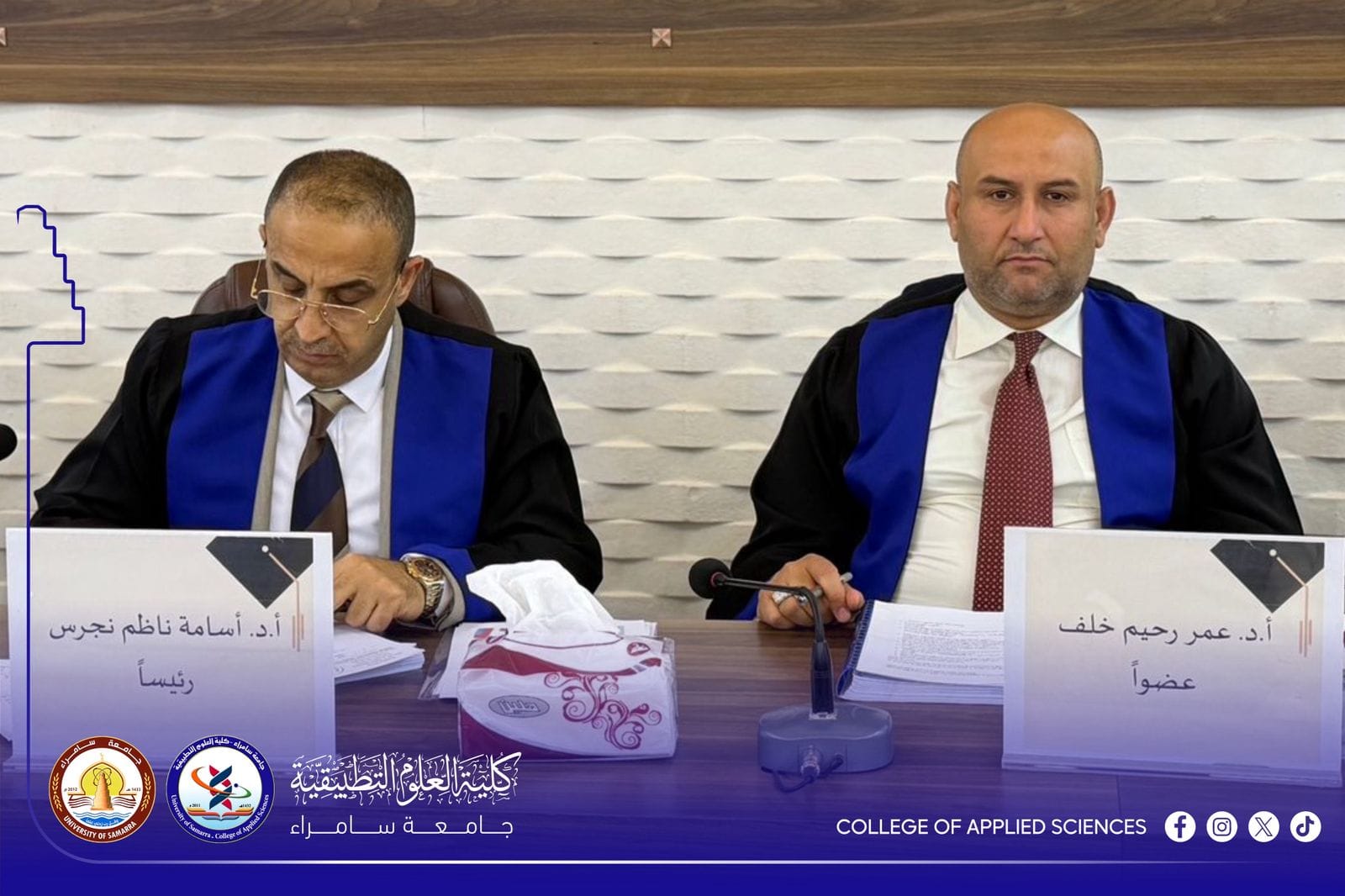 The doctoral dissertation of Assistant Professor Swiss Younis Hamadi, a lecturer at the College of Applied Sciences, University of Samarra, was awarded a “Satisfactory” grade after being defended at the College of Education for Pure Sciences at the same university.