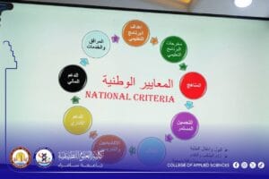 In this context, the lecturers highlighted the importance of academic accreditation and its role in advancing the quality of educational programs. They also outlined the requirements of the national standards for accrediting science disciplines, as well as promoting a culture of institutional quality and reinforcing the principles of continuous improvement.