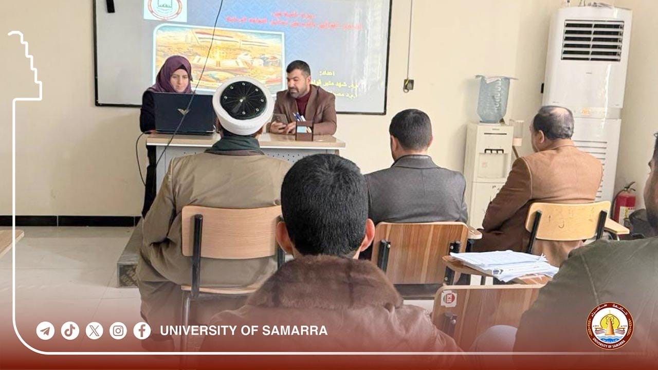 The Department of Creed and Islamic Thought at the College of Islamic Sciences, University of Samarra, organized a scientific session titled “Quranic Discourse and its Impact on Shaping National Culture.” The session was presented by Assoc. Prof. Dr. Mustafa Khalid Jihad and Dr. Shahad Munir Qawam al-Din.