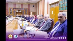 The agenda included discussions on several academic and administrative topics, including the development of the educational process, the unification of procedures for assessment examinations, and the enhancement of academic coordination mechanisms between Colleges of Administration and Economics, in alignment with the directives of the Ministry of Higher Education and Scientific Research, with the goal of advancing academic performance quality.