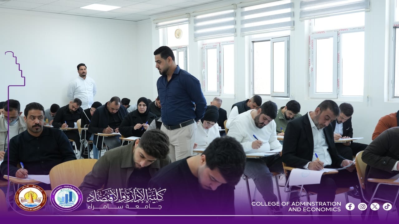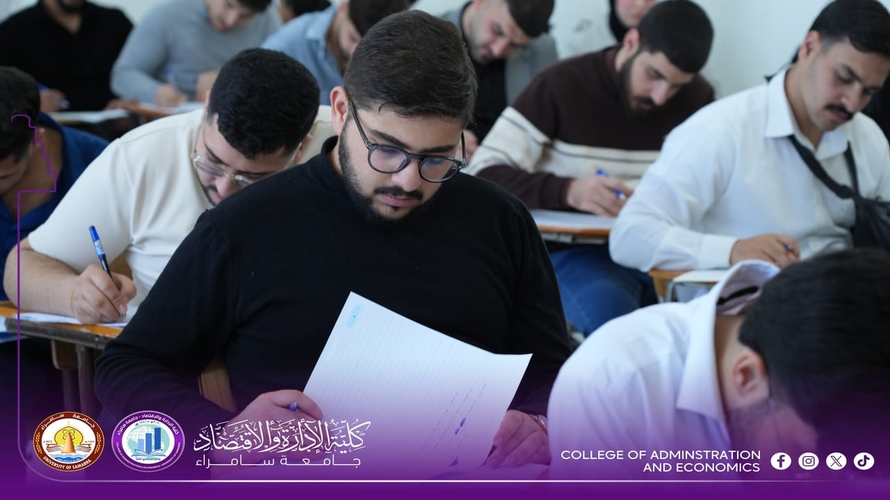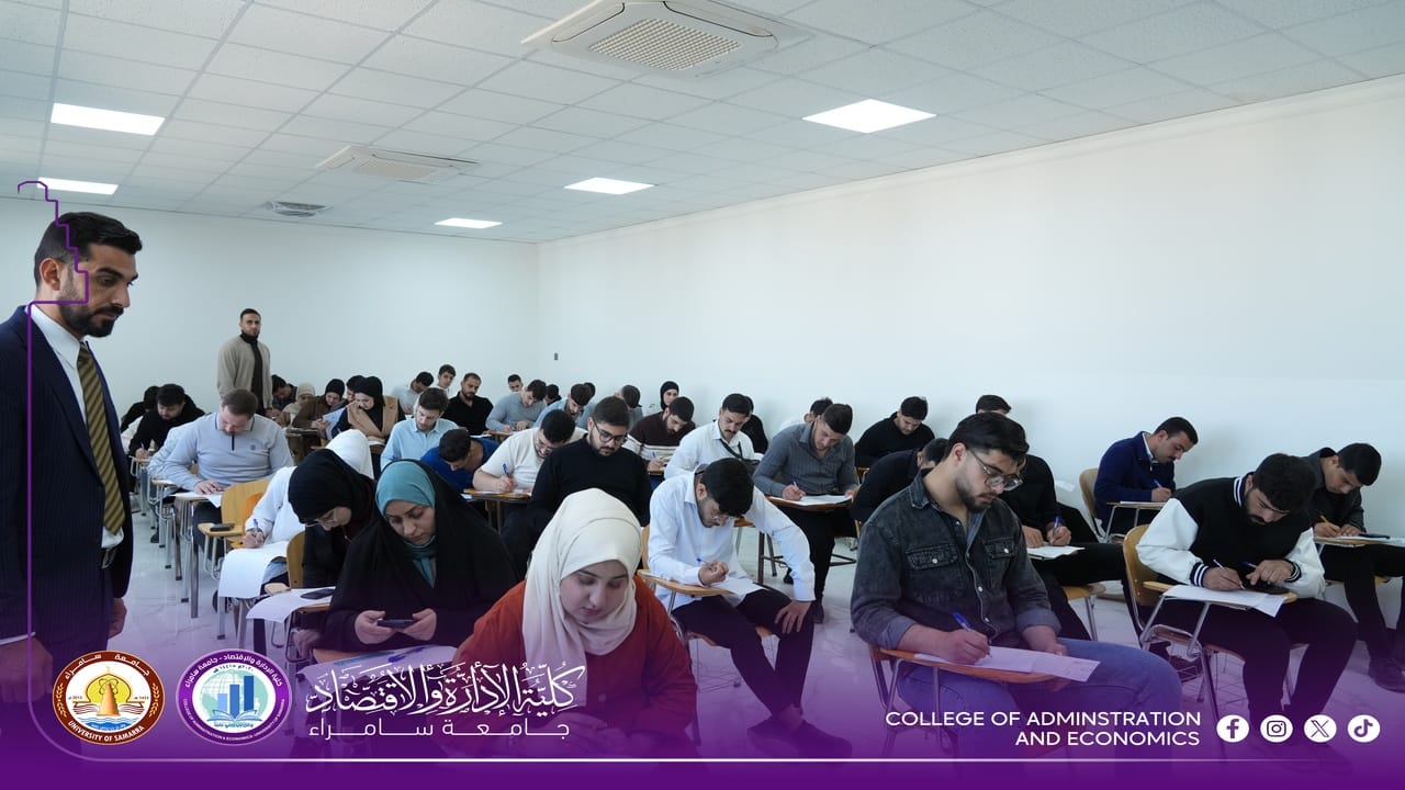 The College of Administration and Economics at University of Samarra commenced, on Sunday, 15 February 2026, the First Semester final examinations for first-year students for the 2025–2026 academic year, within a calm and well-organized environment supported by comprehensive administrative and academic preparations.