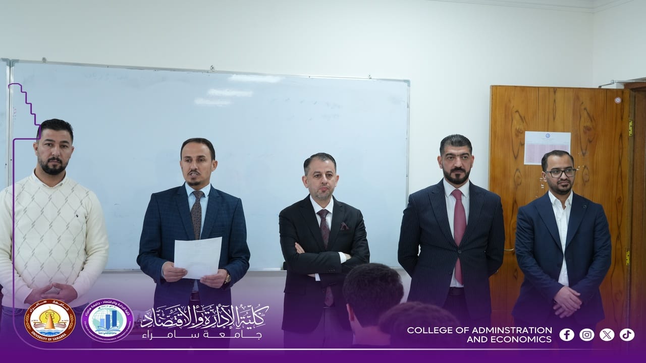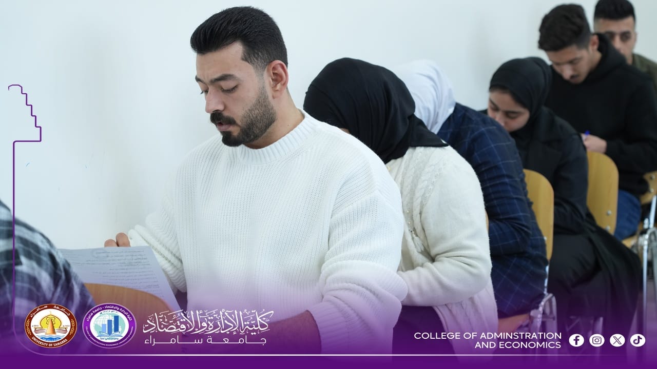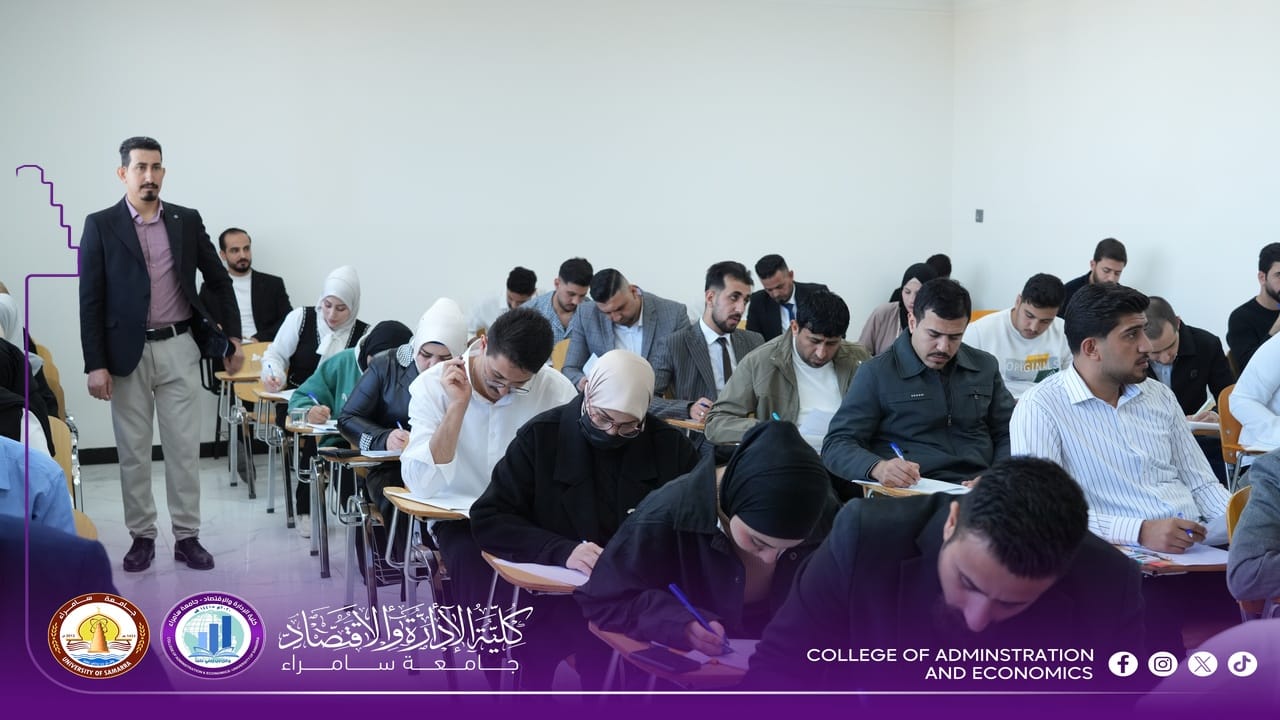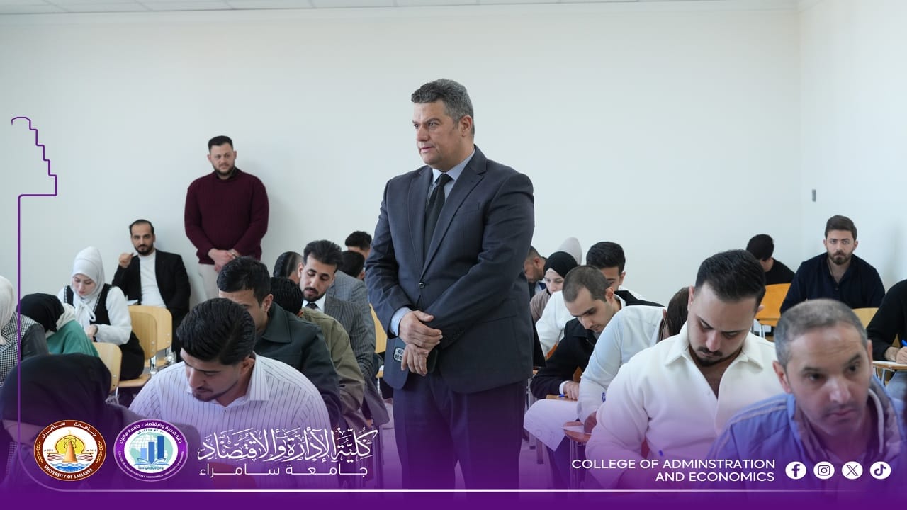 The College of Administration and Economics at University of Samarra commenced, on Sunday, 15 February 2026, the First Semester final examinations for first-year students for the 2025–2026 academic year, within a calm and well-organized environment supported by comprehensive administrative and academic preparations.