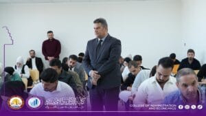 The Dean of the College, Assistant Professor Dr. Ahmed Abdulsalam Ahmed, conducted an inspection tour of the examination halls to observe the progress of the examination process. He emphasized the necessity of adhering strictly to ministerial instructions and the regulations set forth by the Examination Committee, while commending the efforts of the committee members, faculty, and administrative staff in providing an appropriate examination environment that enables students to complete their assessments smoothly and in an orderly manner.
