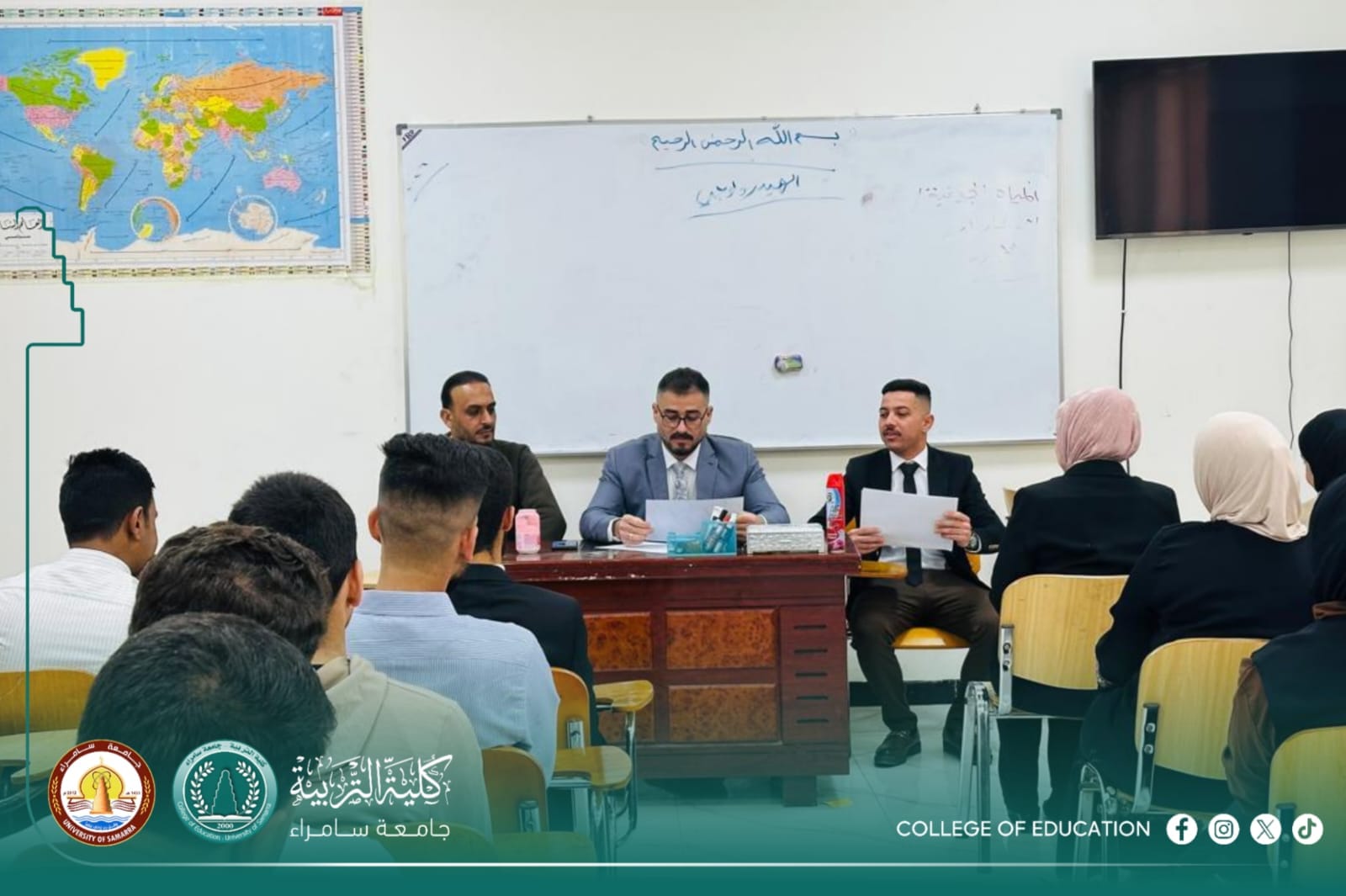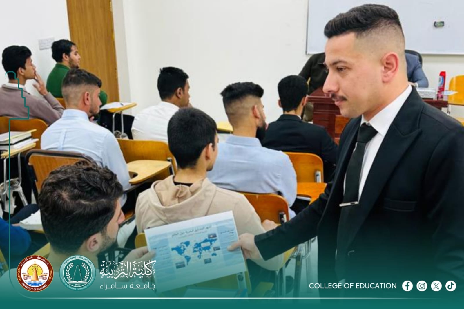 نظم قسم الجغرافيا ندوة علمية بعنوان “الأهمية الجغرافية للمضائق البحرية في العالم”. وقد ألقى الندوة الدكتور عبد الرحمن حمادة صالح والمحاضر المساعد حيدر باسم فرحان، بمشاركة طالب السنة الأولى المسائي إياد خالد حسين، الذي كان مسؤولاً عن توزيع الكتيبات العلمية على الحضور.