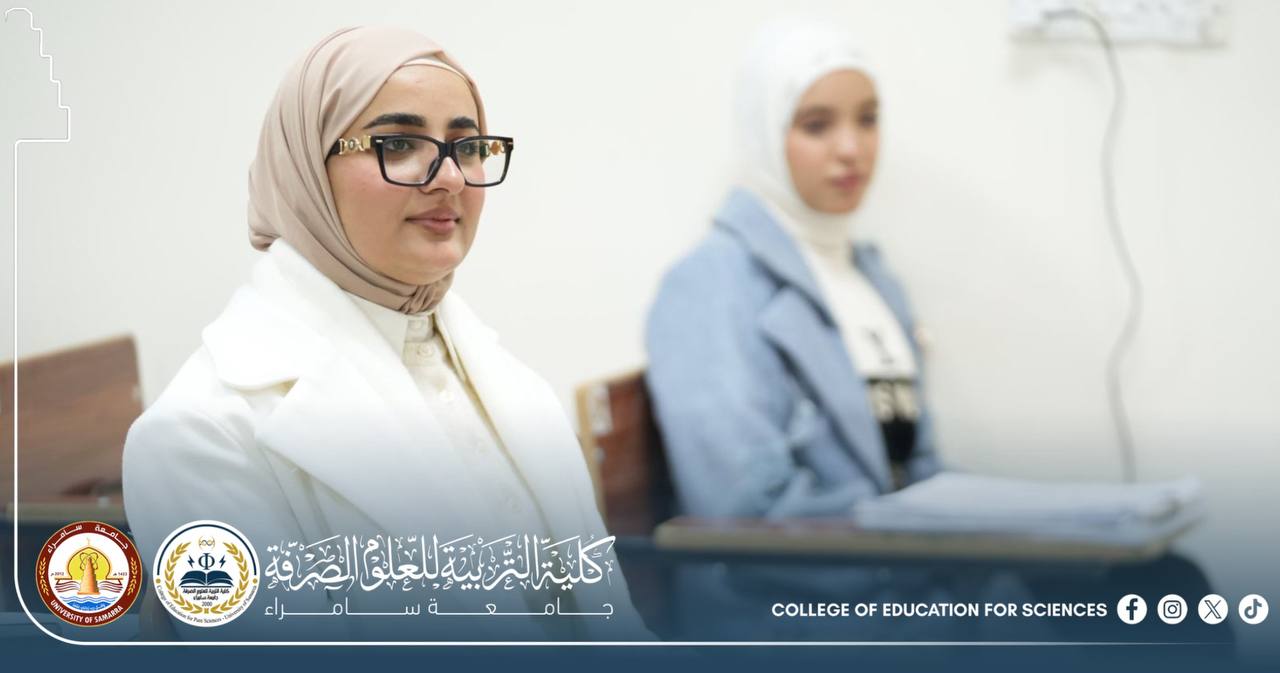 The Department of Chemistry at the College of Education for Pure Sciences – University of Samarra organized a scientific course entitled “The Effect of Temperature on the Rate of Chemical Reactions in Nature.” The course was presented by Assistant Lecturer Rusul Rifaat Jameel, Assistant Lecturer Dua Abdulrazzaq, and Assistant Lecturer Reem Ibrahim Mahdi.