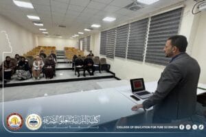 The Department of Chemistry at the College of Education for Pure Sciences – University of Samarra organized a scientific seminar entitled “Dietary Supplements and Their Role in Biological Activity,” presented by Dr. Maytham Mohammed Bakr.