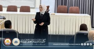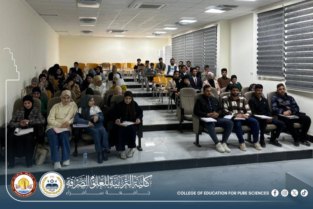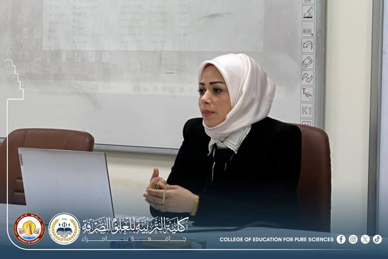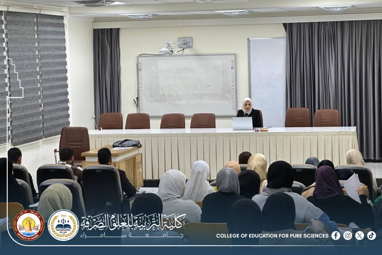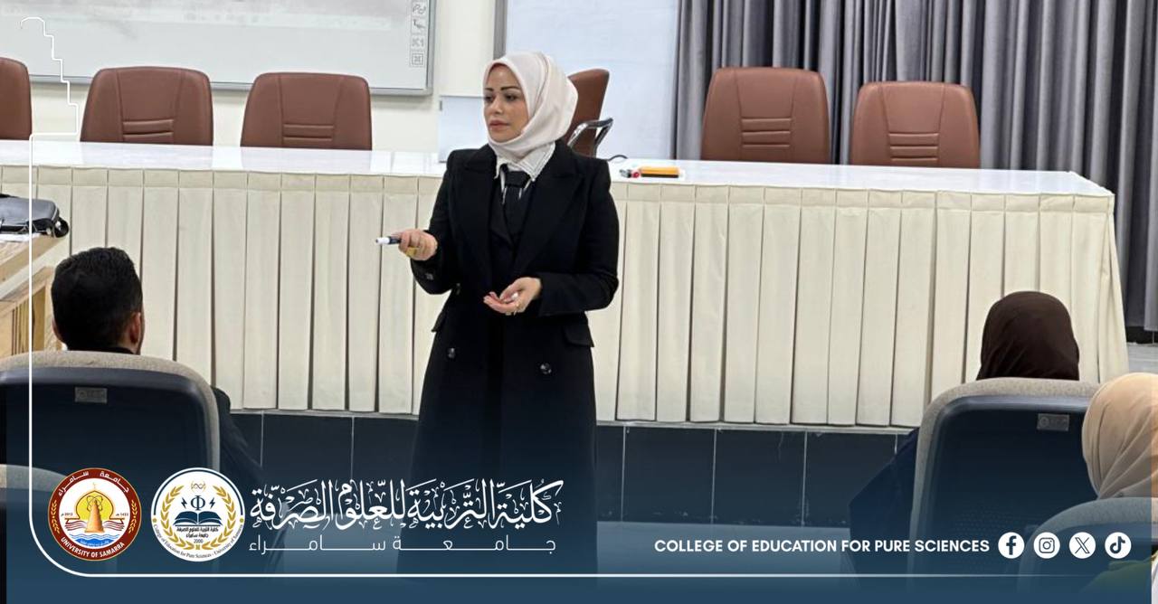 The Department of Chemistry at the College of Education for Pure Sciences – University of Samarra organized a scientific seminar entitled “Suicide Between Psychological Pressures and Religious Deterrence,” presented by Assistant Lecturer Huda Matar Ibrahim.