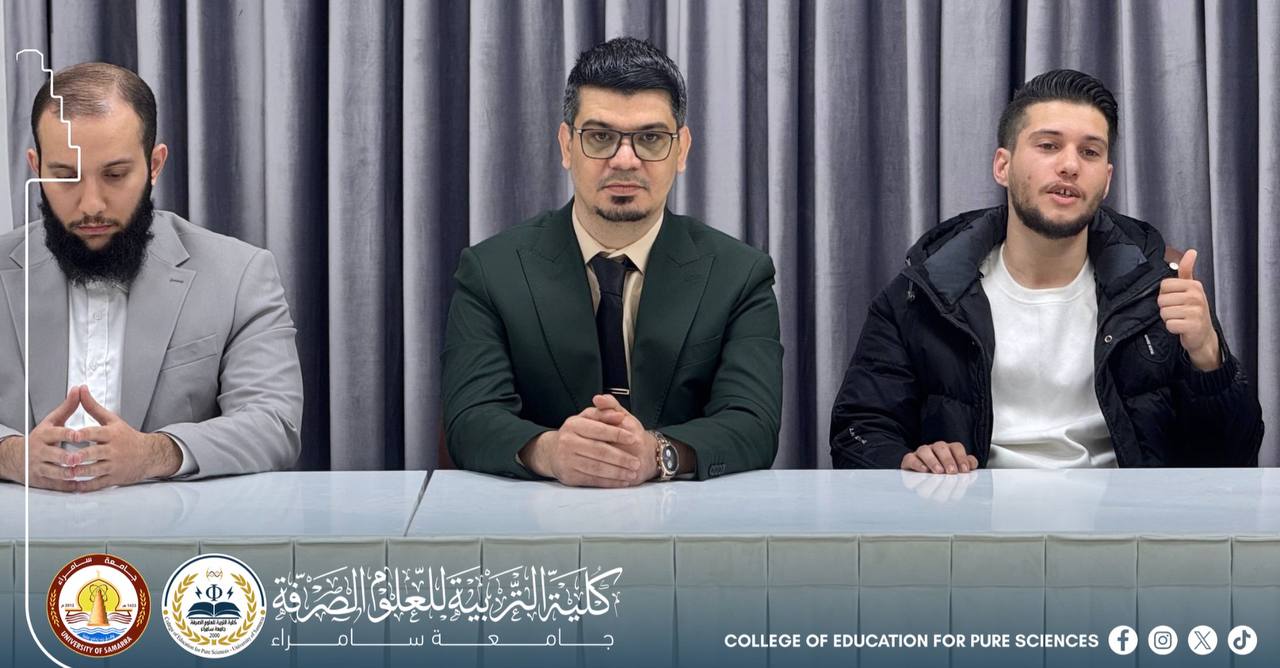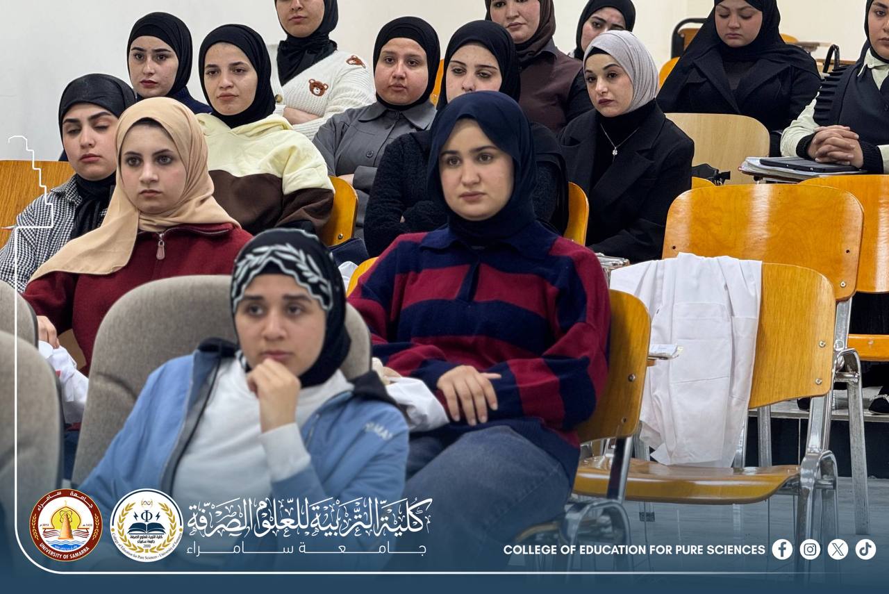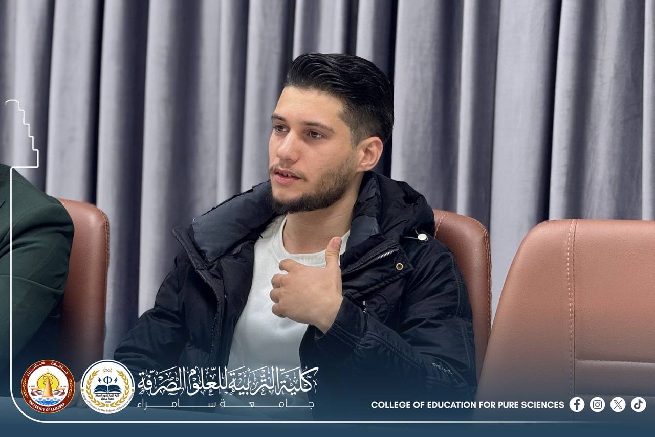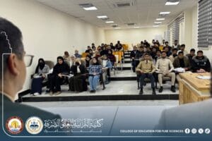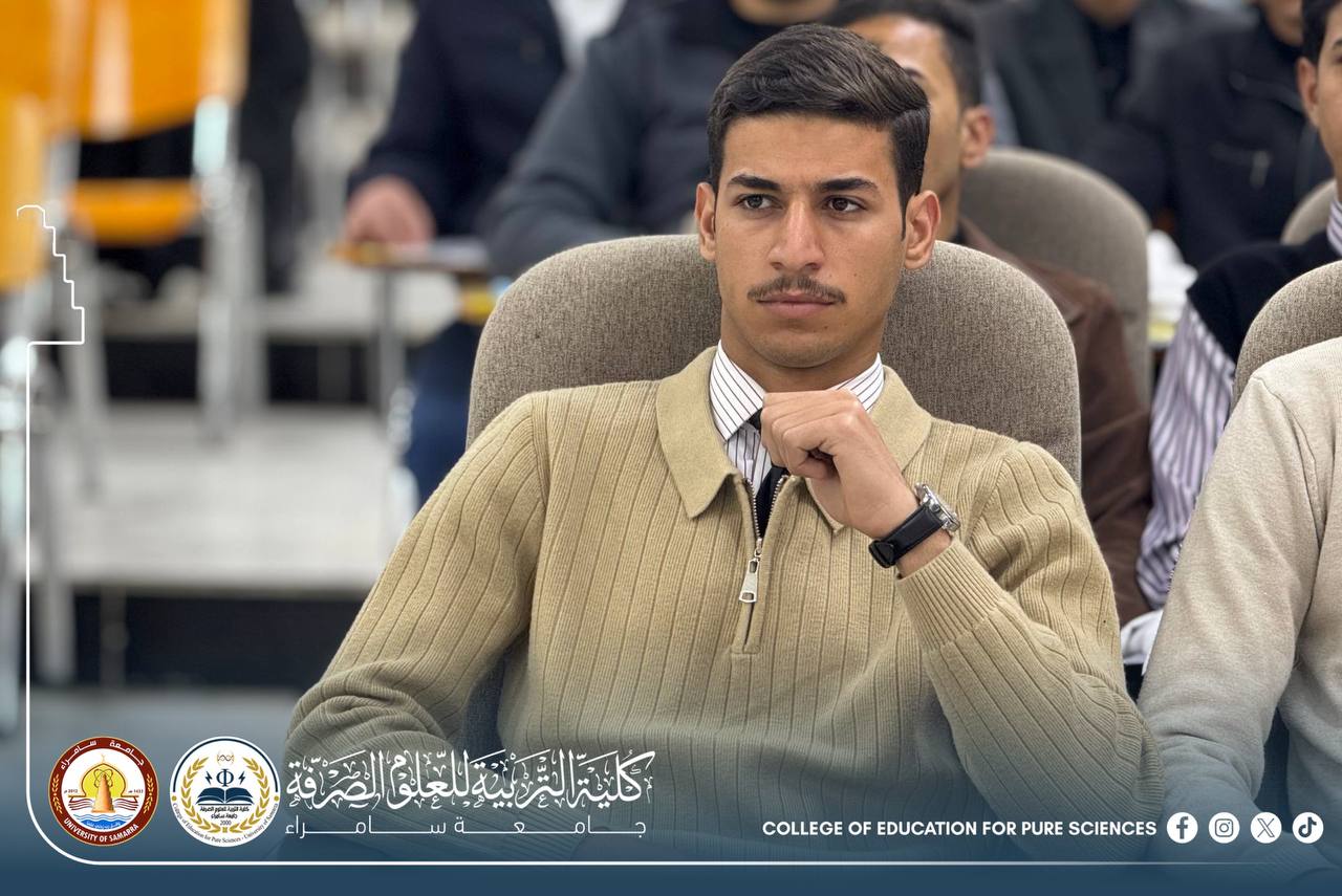 The Department of Chemistry at the College of Education for Pure Sciences – University of Samarra organized a seminar entitled “Excellence and Success as a Guide Toward Academic and Future Achievement,” presented by Assistant Lecturer Mohammed Daham Humaidi, alongside a number of graduate students.