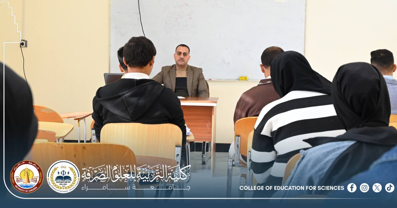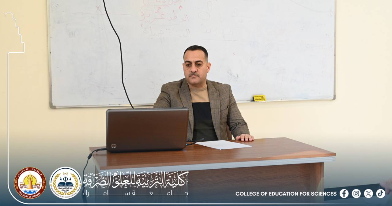 The Department of Life Sciences at the College of Education for Pure Sciences – University of Samarra held a scientific seminar entitled “Identification of Some Heavy Metals Affecting the Quality of Tigris River Water and Their Impact on Aquatic Life”, presented by Assistant Professor Dr. Hisham Fadel Shakir.