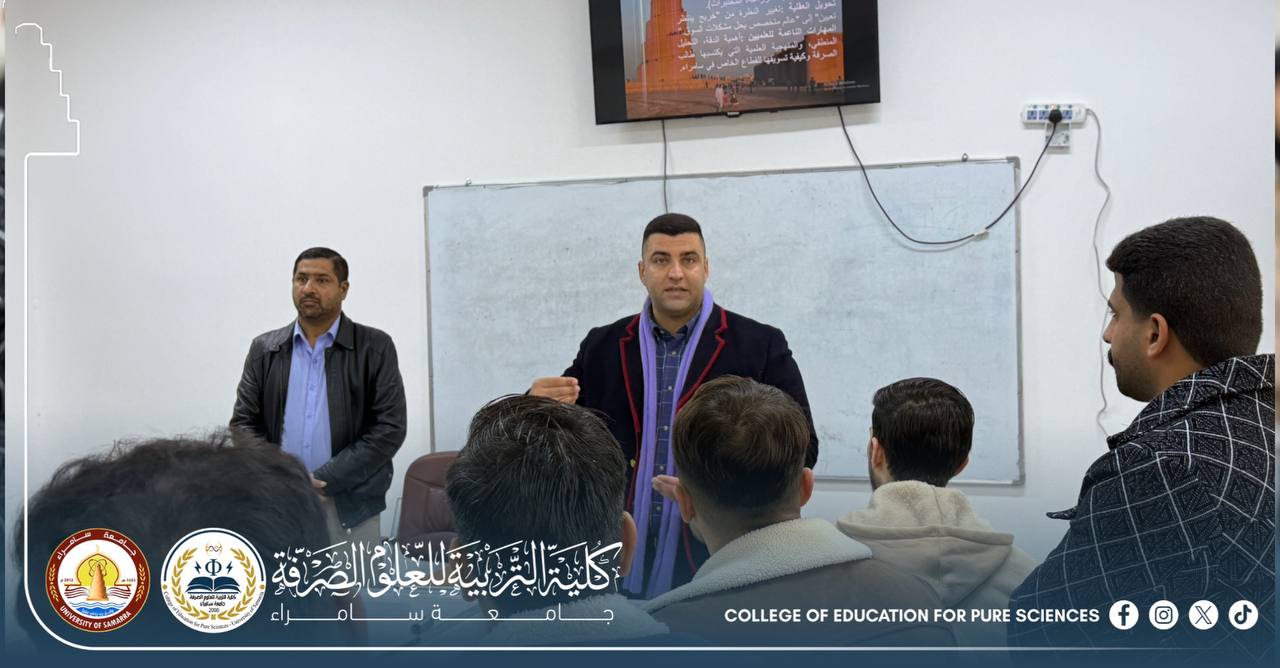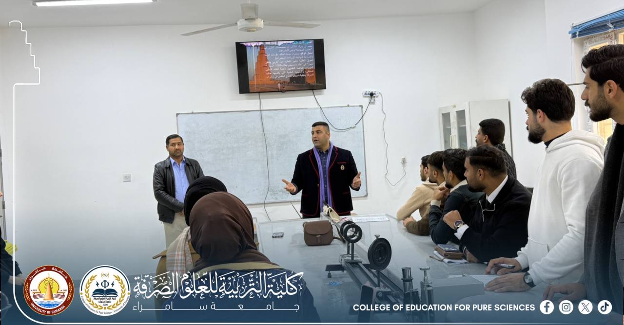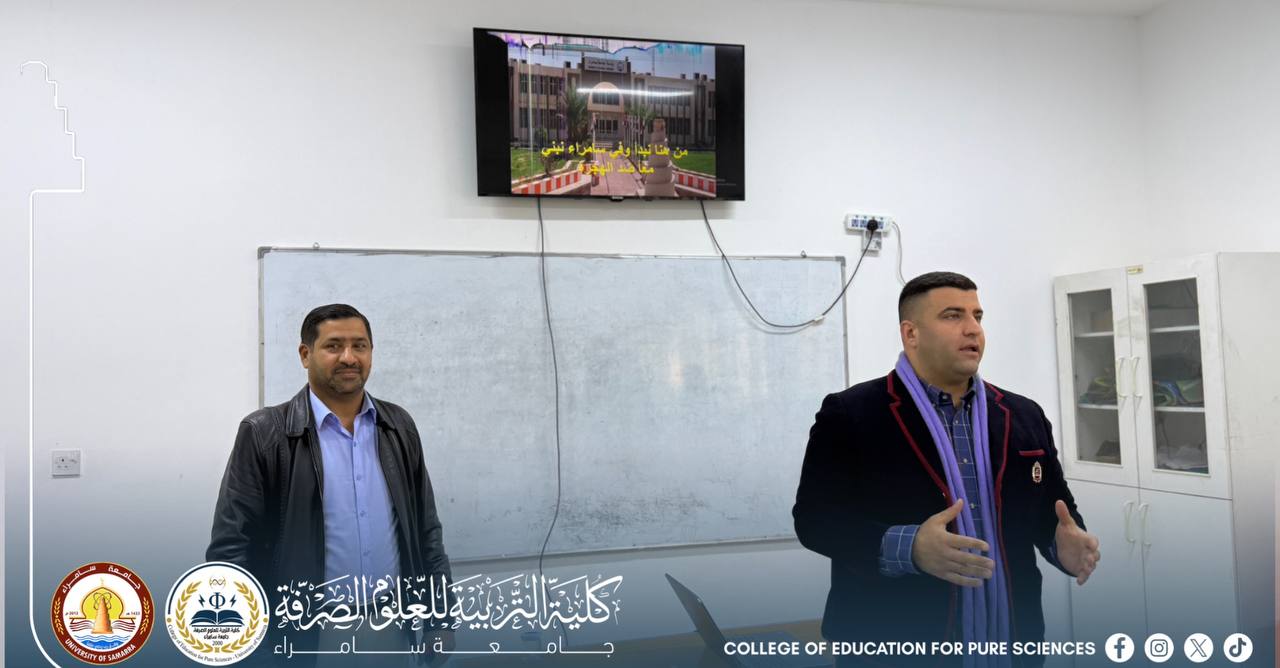 The Department of Physics, in cooperation with the Media Unit at the College of Education for Pure Sciences – University of Samarra, organized a seminar titled “From Here We Begin… In Samarra We Build, Together Against Migration.” The seminar was delivered by Assistant Lecturer Nawfal Abdul Rahman Hamoud, as part of the implementation of the directives of the Ministry of Higher Education and Scientific Research to curb illegal migration.