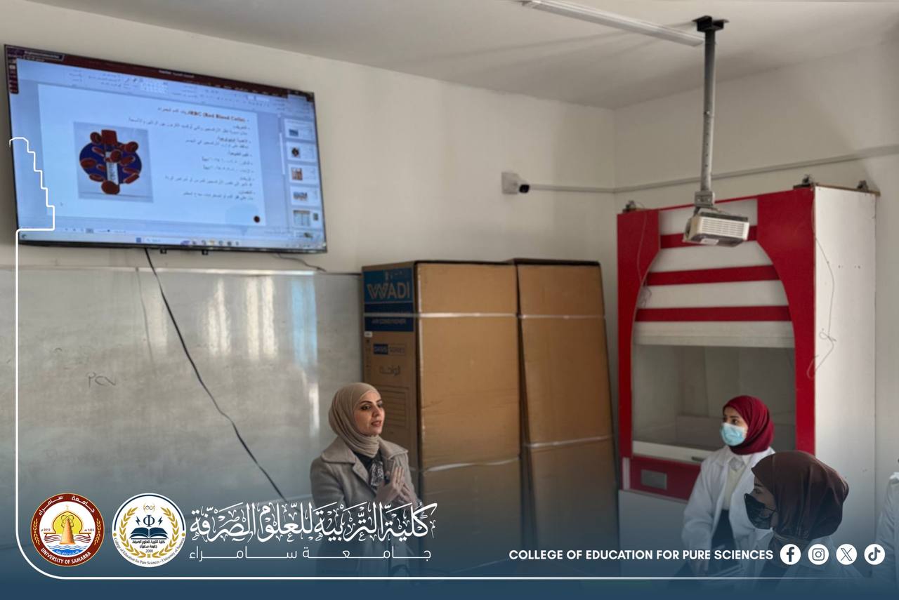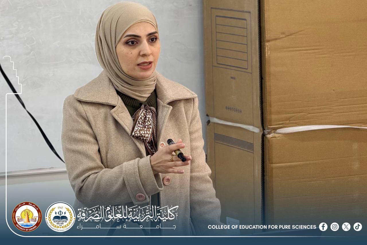 The Department of Biology at the College of Education for Pure Sciences – University of Samarra organized a training workshop entitled “The Analytical Approach to Interpreting Abbreviations and Reference Values of Laboratory Analyses and Physiological Tests.” The workshop was delivered by Dr. Maarib Ahmed Shawkat, Assistant Lecturer Maisam Ibrahim Mahdi, and Assistant Lecturer Asmaa Ismail Alwan.