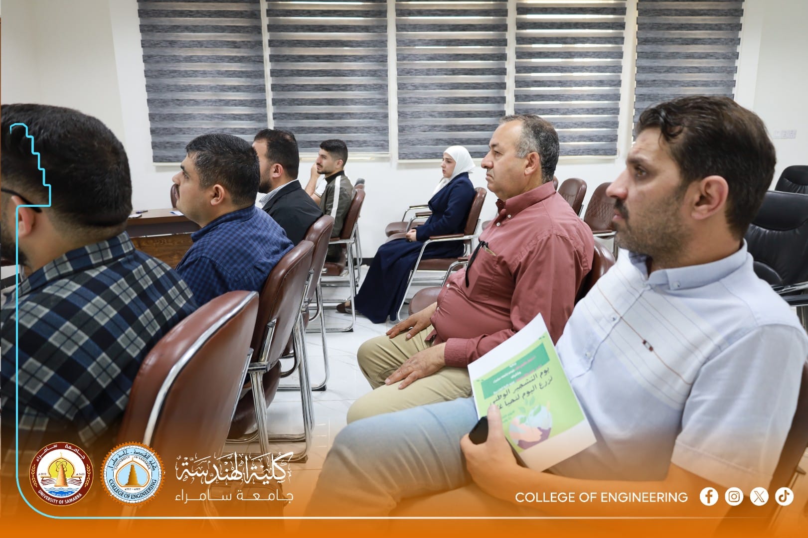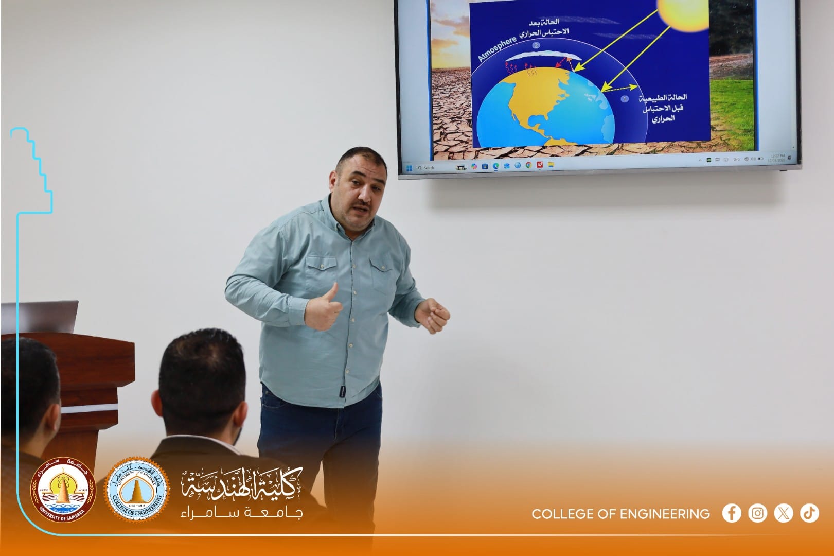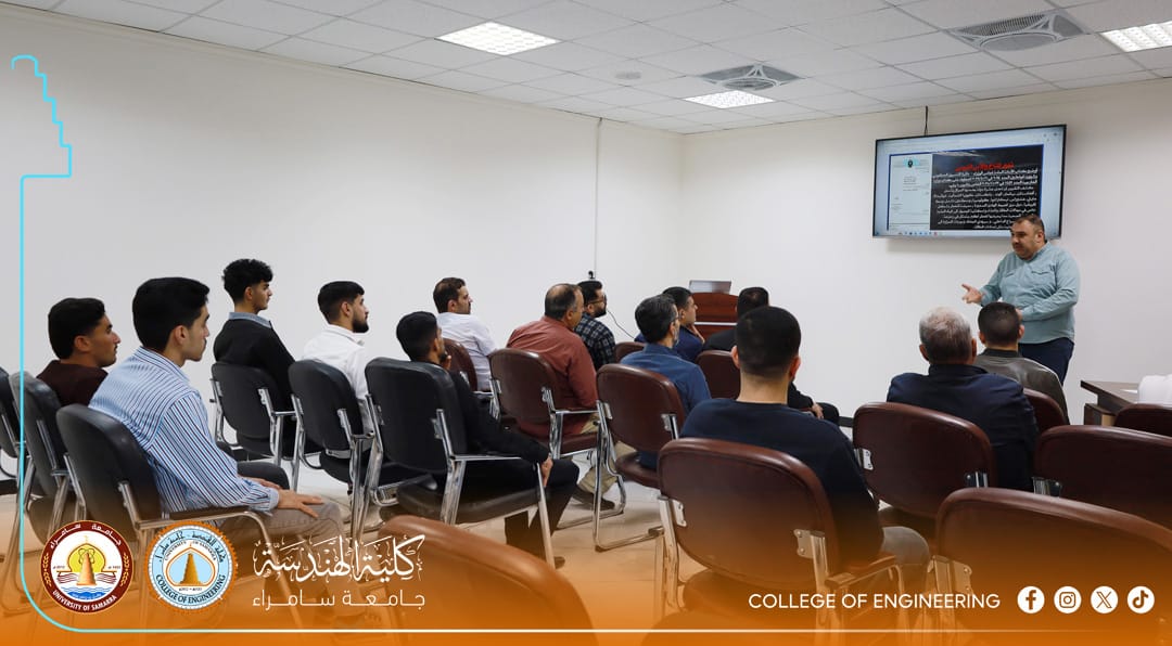The College of Engineering at the University of Samarra organized a specialized awareness lecture presented by Dr. Mohammed Jamil Mahdi (Head of the Department of Architecture) for second and fourth-year students. Attended by several department heads and staff members, the lecture highlighted the dangerous dimensions of climate change resulting from human activities and the burning of fossil fuels.