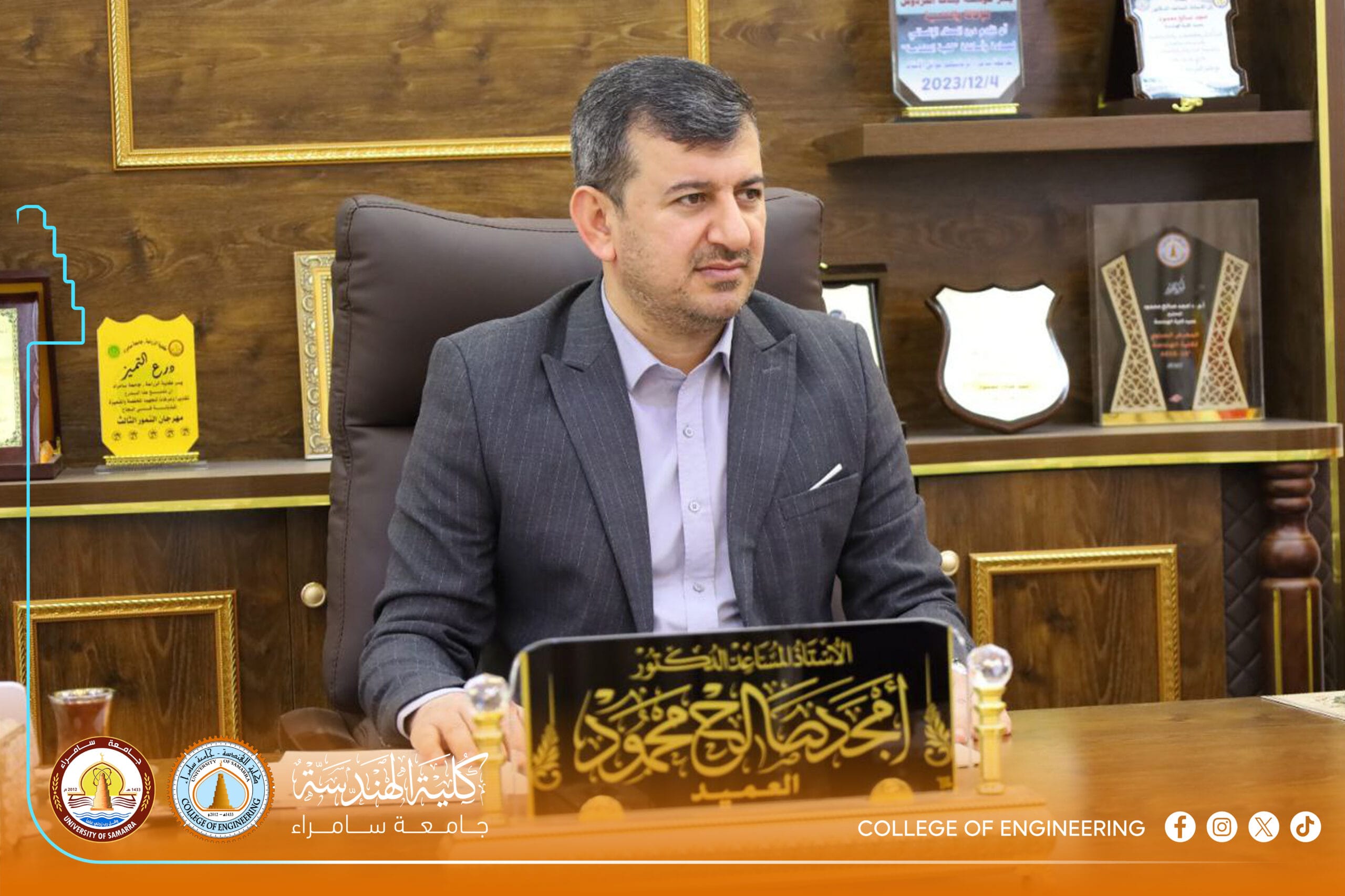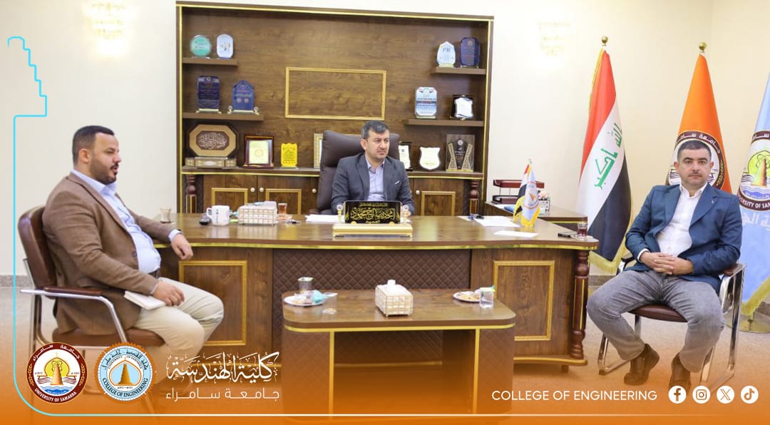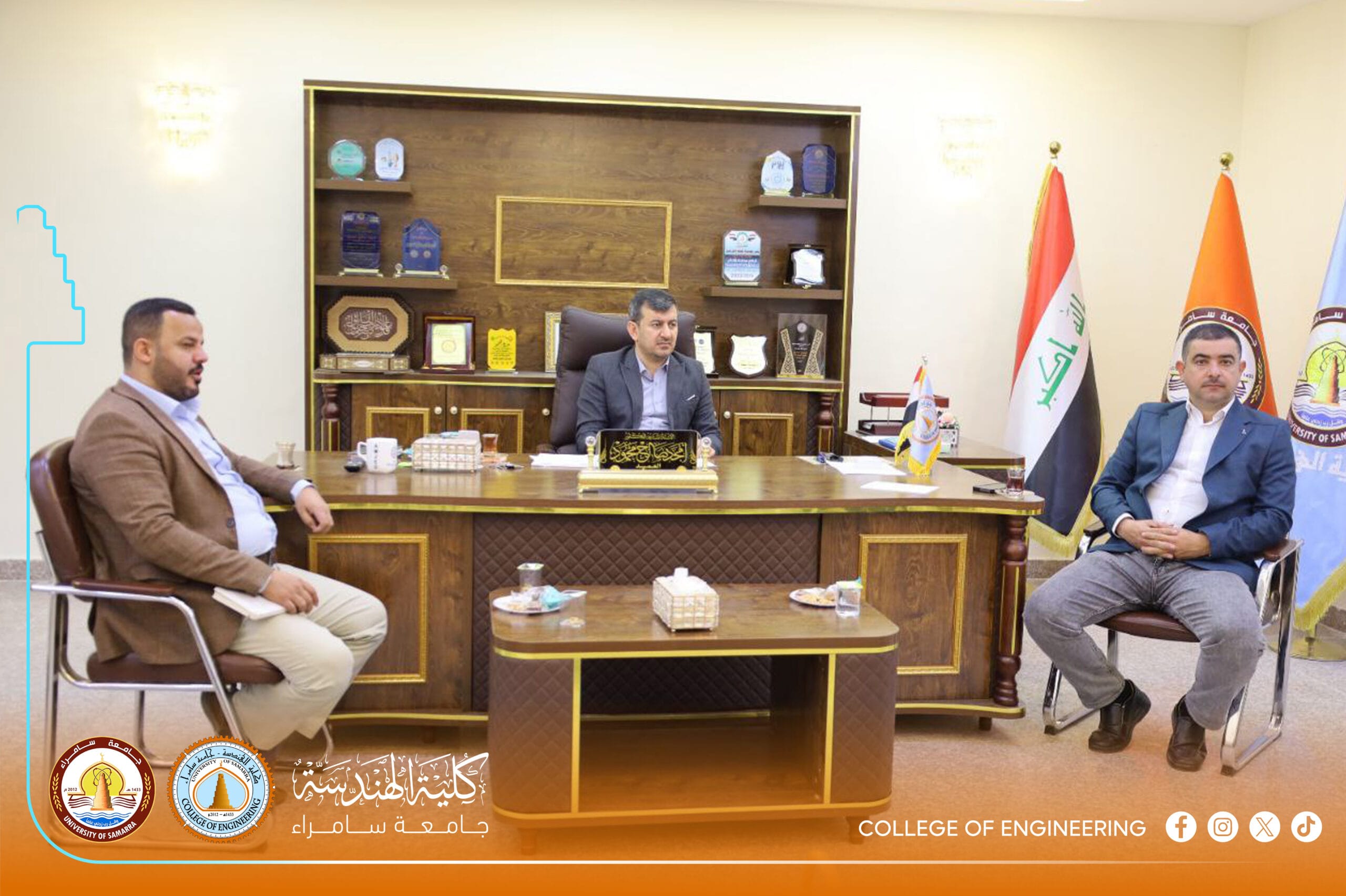 The Council of the College of Engineering at the University of Samarra held a productive meeting, chaired by the Dean of the College, Assistant Professor Dr. Amjed Saleh Mahmood, to discuss a number of pivotal files concerning the academic and administrative affairs of the College.