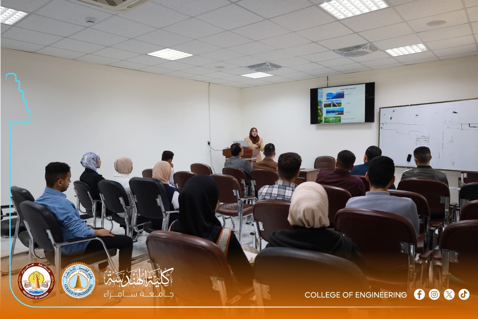 The Human Rights Unit at the College of Engineering, University of Samarra—represented by its head, Jurist Omar Saad Hamid—organized a specialized workshop titled “Clean Energy: Our Responsibility Toward Society,” presented by Dr. Shaimaa Hisham Abdul-Malik (Head of the Academic Systems Division at the college).