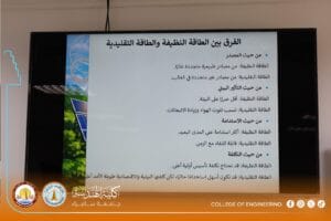 The workshop addressed the importance of the strategic shift toward renewable energy sources as a fundamental pillar for building a secure future, while explaining the essential differences between traditional and clean energy in terms of environmental impact and long-term economic costs.