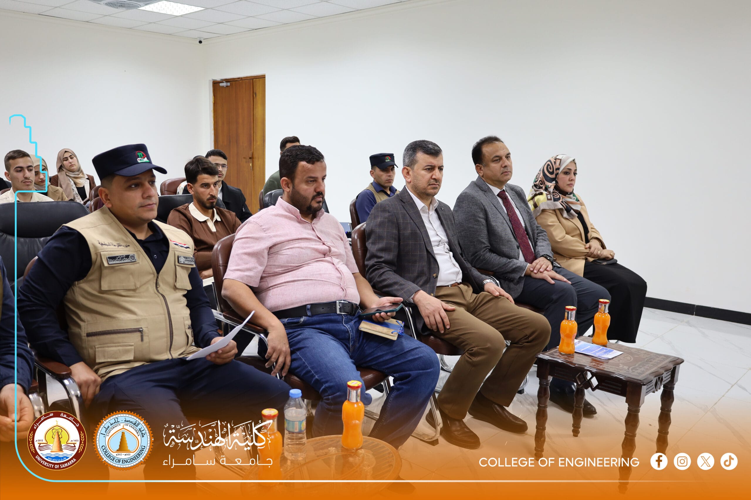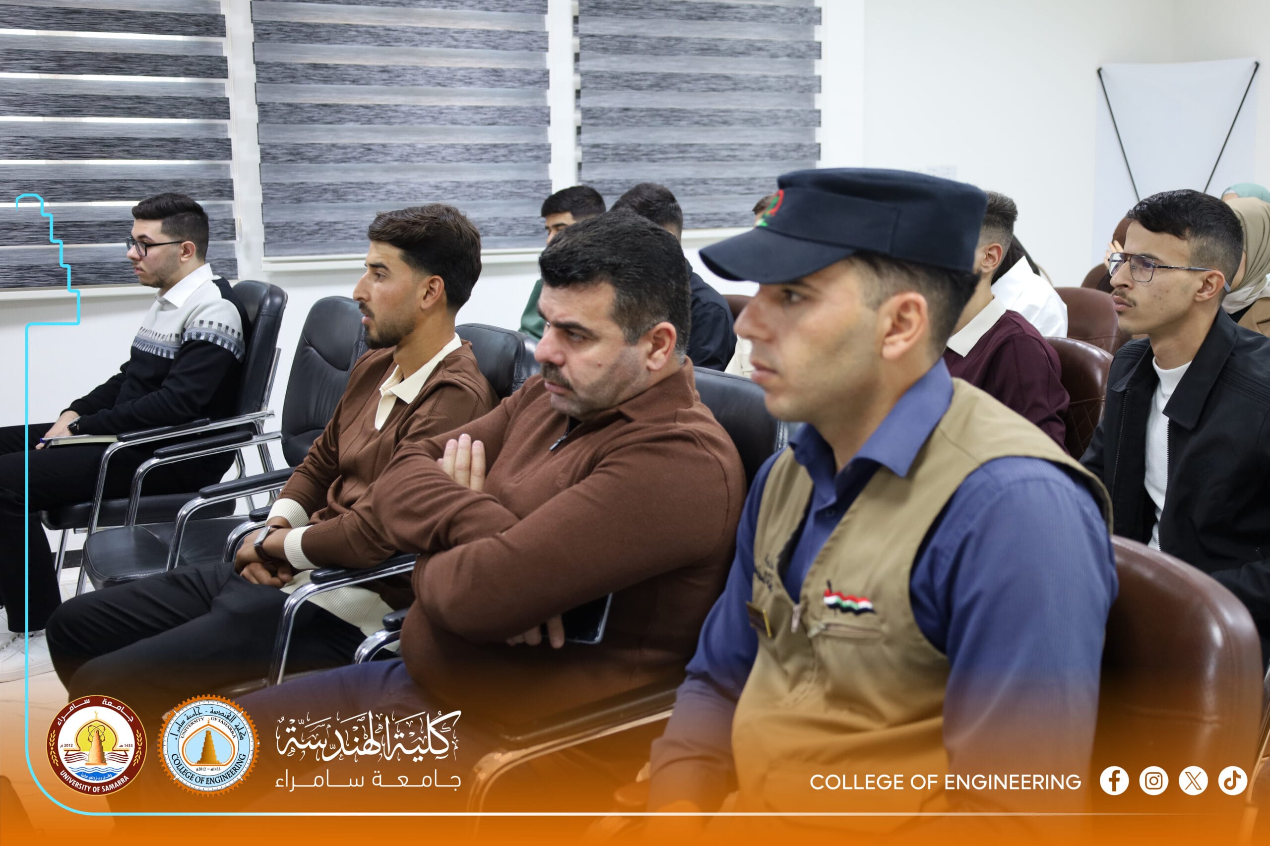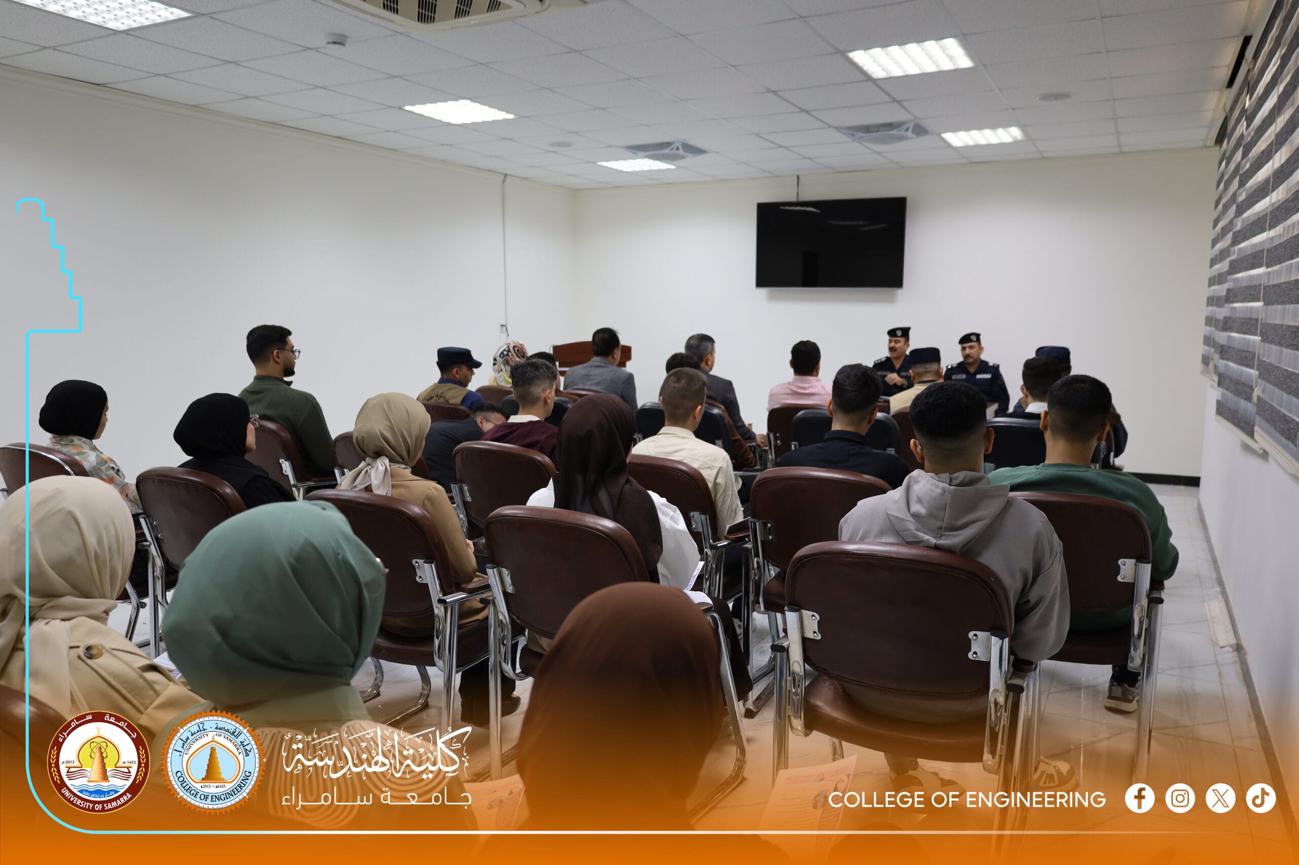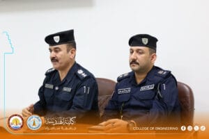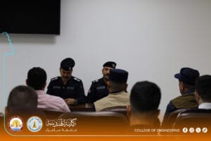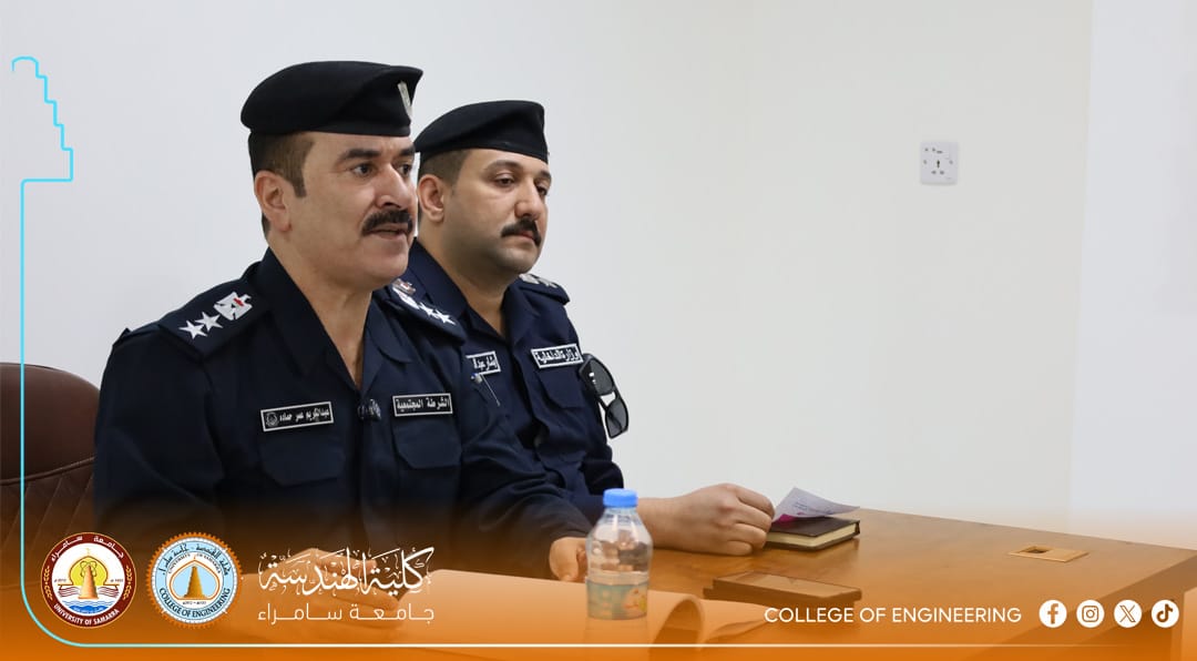 The Psychological Counseling and Educational Guidance Unit at the College of Engineering, University of Samarra, represented by its official, Dr. Shaymaa Hisham Abdulmalik, organized a specialized awareness lecture titled: “Legal Aspects of Drug Crimes and Mechanisms for Deterrence and Treatment.” The lecture was presented by Colonel Abdul Kareem Omar Hamada, Director of Community Police in Samarra, and Lieutenant Colonel Bashar Abdulhameed Jaafar.