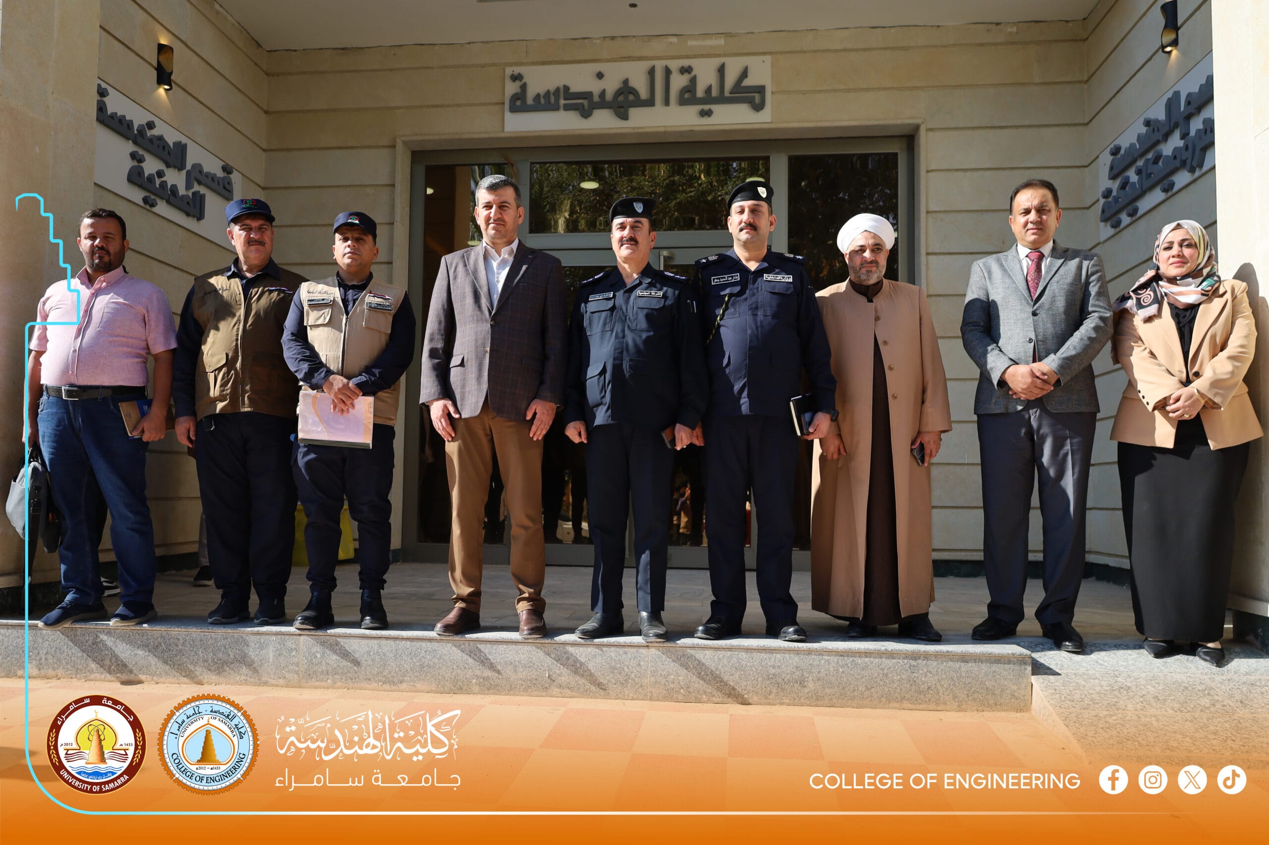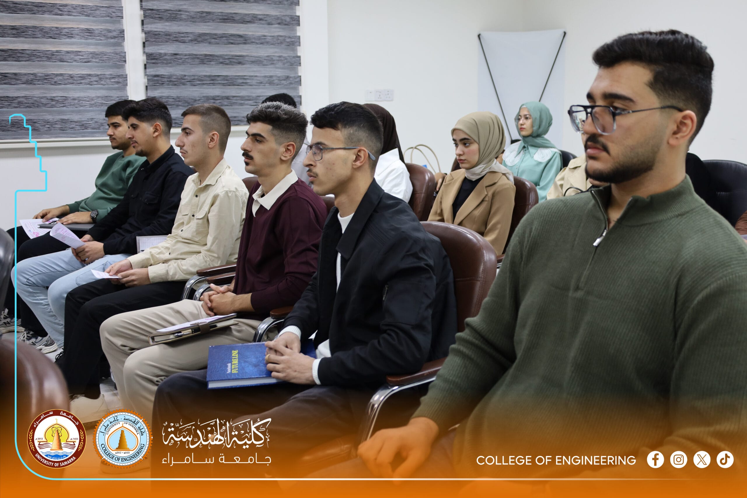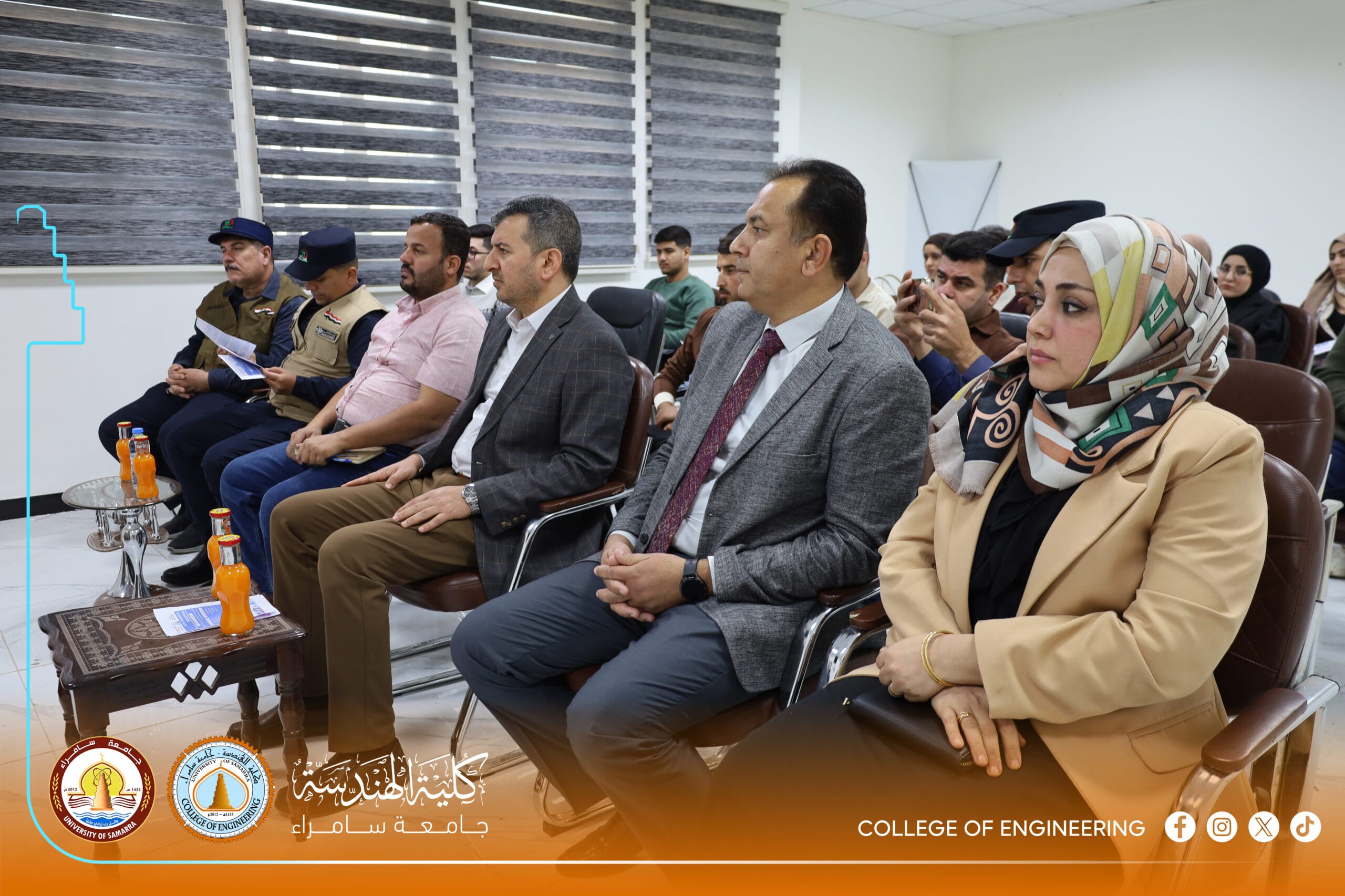 The Psychological Counseling and Educational Guidance Unit at the College of Engineering, University of Samarra, represented by its official, Dr. Shaymaa Hisham Abdulmalik, organized a specialized awareness lecture titled: “Legal Aspects of Drug Crimes and Mechanisms for Deterrence and Treatment.” The lecture was presented by Colonel Abdul Kareem Omar Hamada, Director of Community Police in Samarra, and Lieutenant Colonel Bashar Abdulhameed Jaafar.
