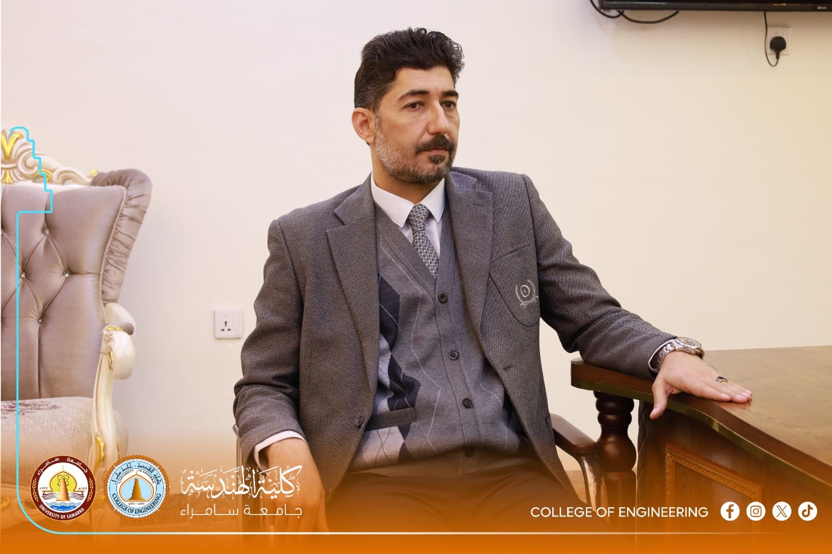 The Dean of the College of Engineering at University of Samarra, Assistant Professor Dr. Amjed Saleh Mahmood, received an academic delegation from the Department of Life Sciences at the College of Education for Pure Sciences, headed by the Head of the Department, Lecturer Dr. Aqeel Majid Ahmed. This visit comes as part of a scientific initiative aimed at enhancing academic openness and expanding students’ knowledge horizons through the exchange of expertise among the university’s colleges.