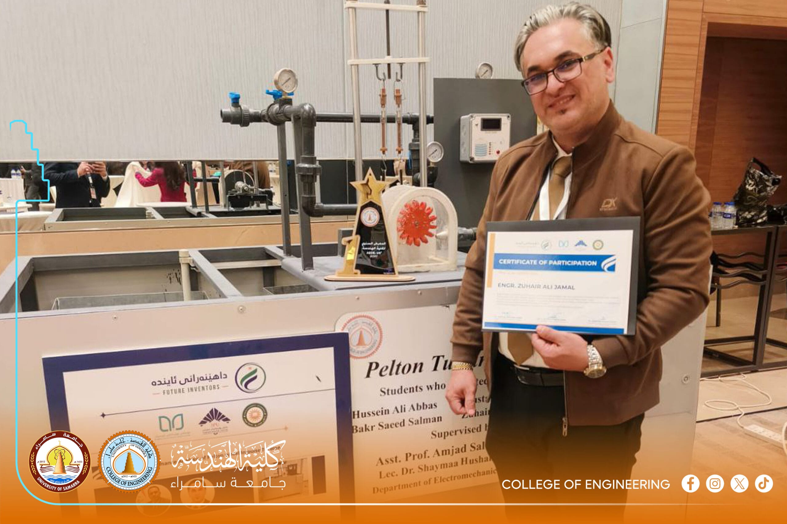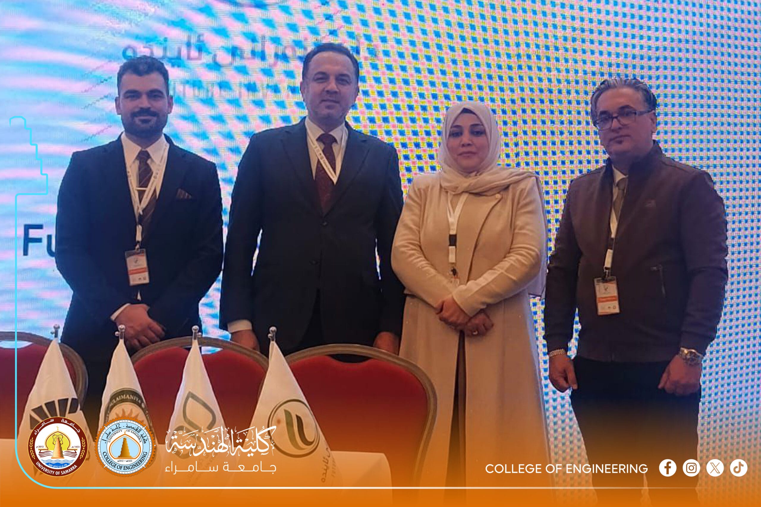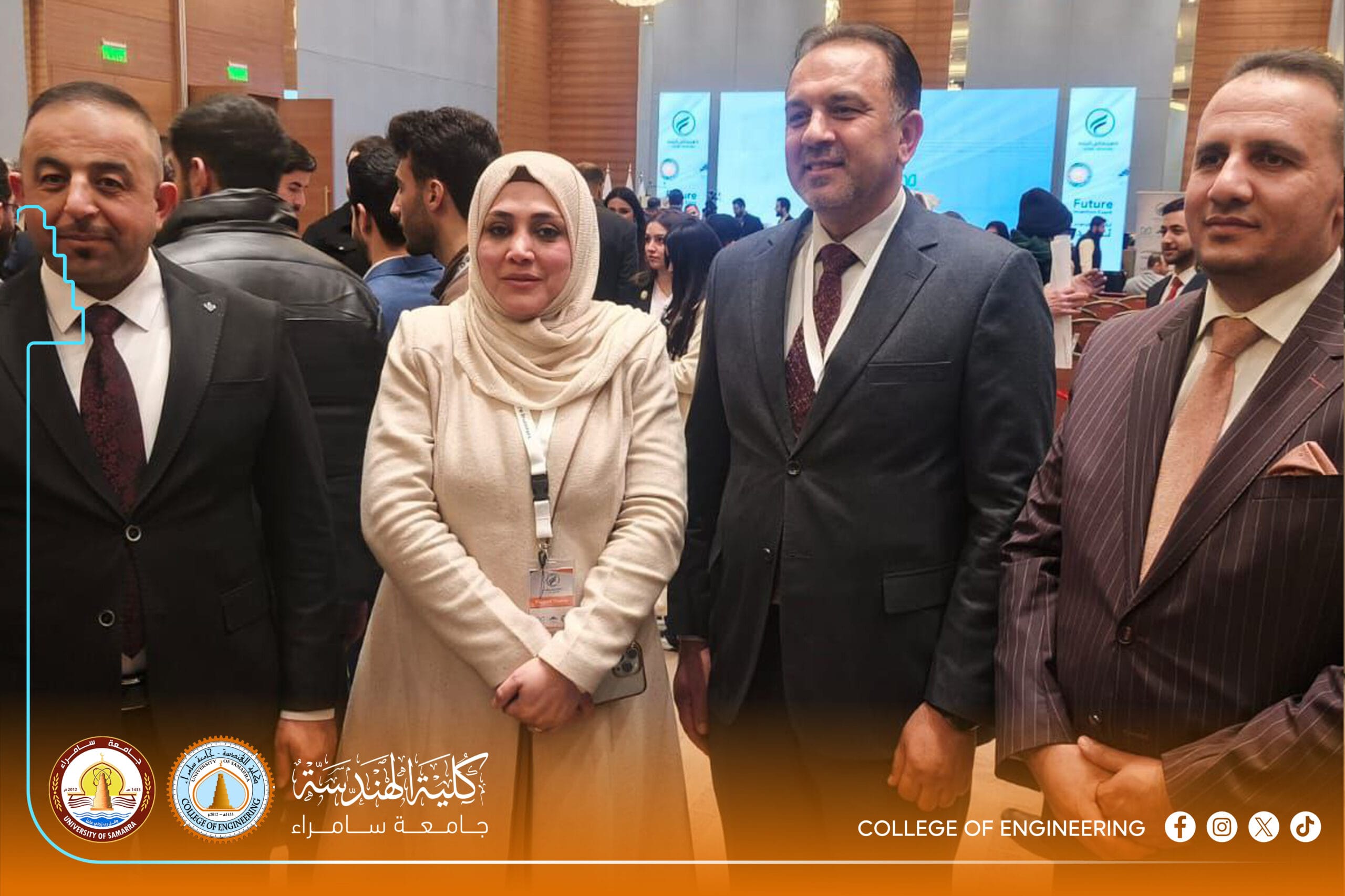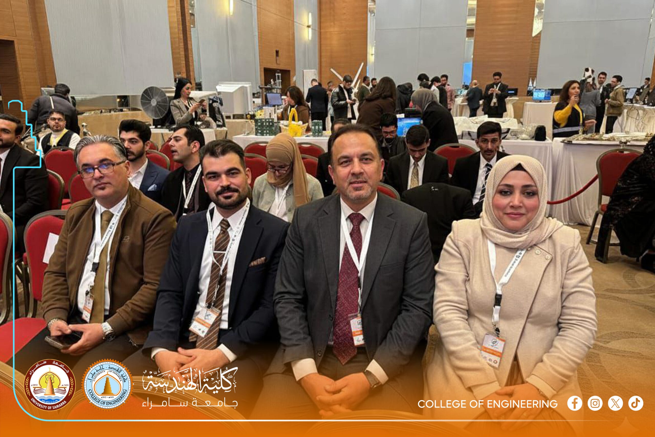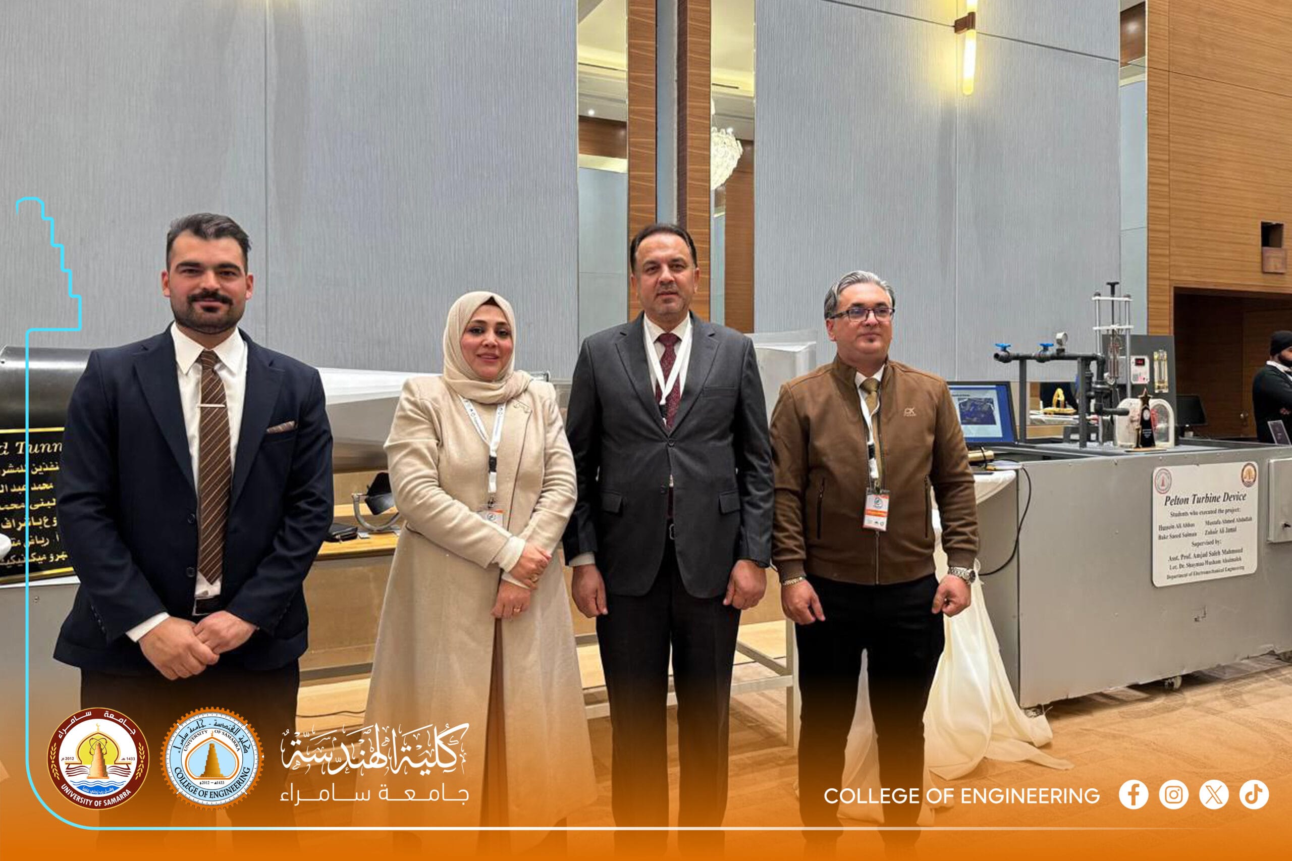 The excellence was not limited to the faculty; it extended to graduates of the Electromechanical Engineering Department, Engineer Zuhair Ali Jamal and Engineer Damir Saud Wasmi. They provided detailed technical explanations of their projects to an elite group of academics, politicians, and investors. These efforts resulted in Samarra University’s projects being selected among the top 50 out of 495 entries, reflecting the university’s high scientific efficiency and competitive edge.