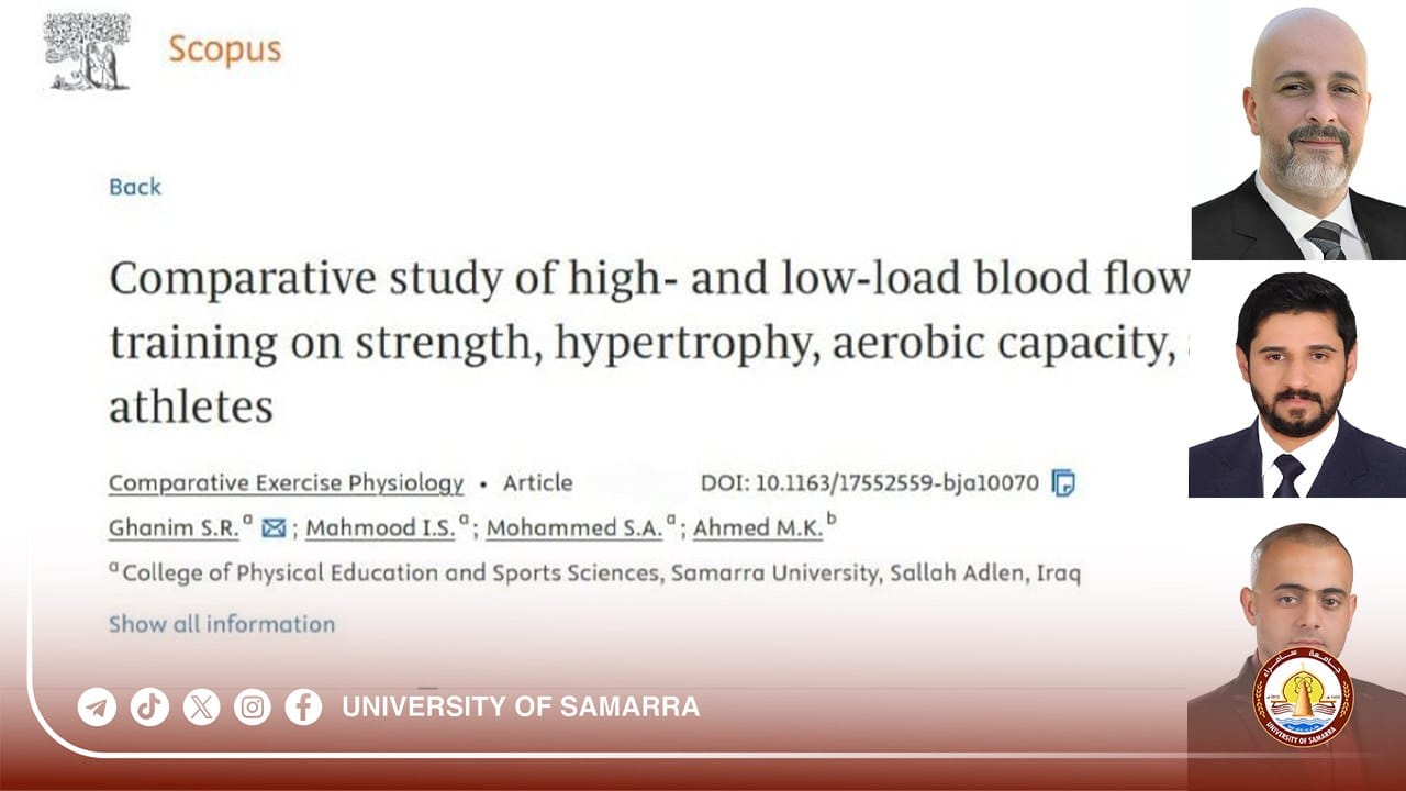 Assoc. Prof. Dr. Saif Ali Mohammed, Dr. Saif Rasheed Ghanem, and Assist. Lect. Idris Saad Mahmoud, faculty members at the College of Physical Education and Sports Sciences at Samarra University, have published a joint scientific research paper in the \\\”Journal of Exercise Physiology\\\”.