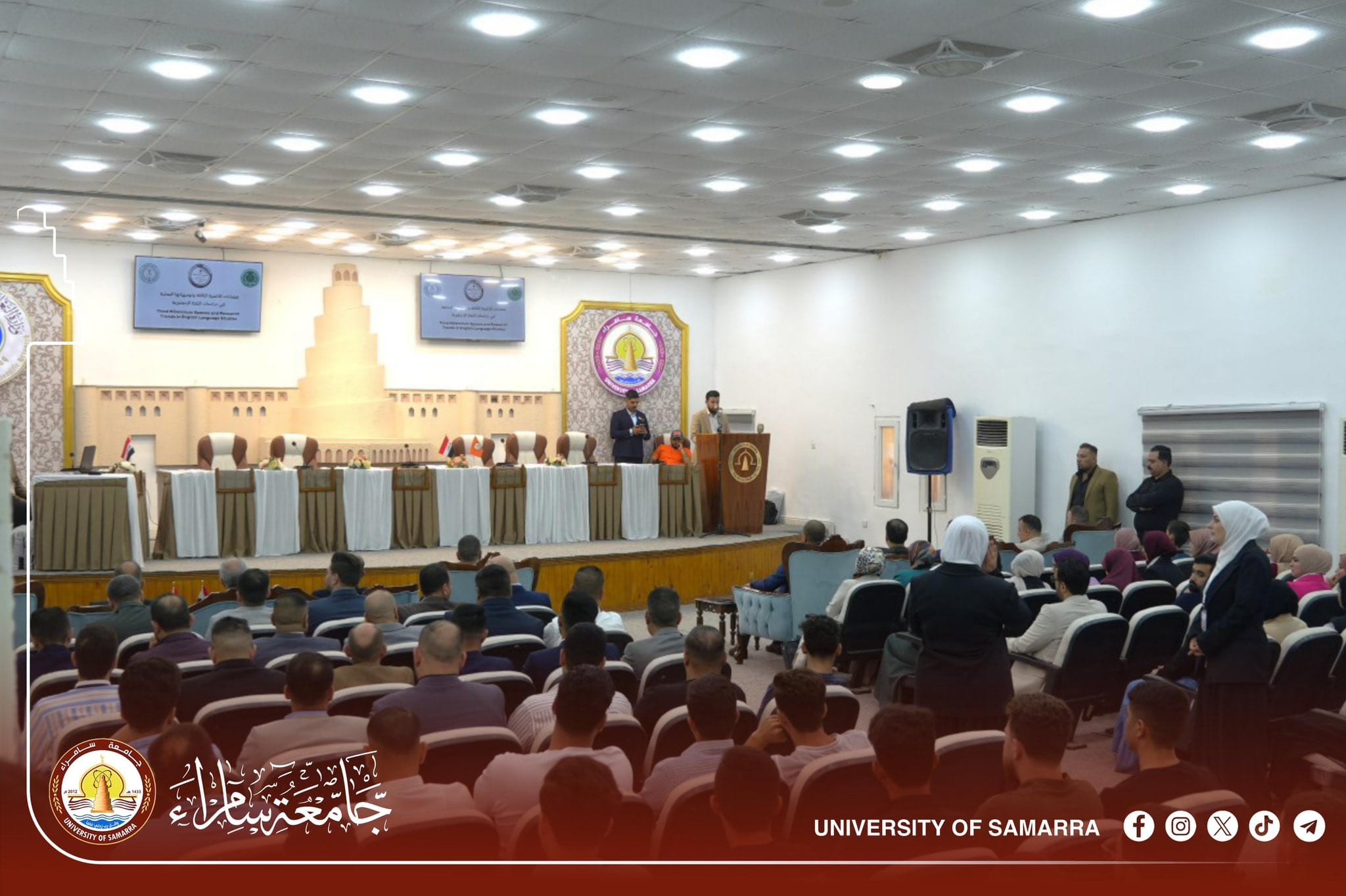 Coinciding with its International Day, the English Language Department at the College of Education, University of Samarra, held its first scientific conference under the slogan “With Change, Civilizations Thrive,” titled “The Spaces of the Third Millennium and Research Trends in English Language Studies,” on the morning of Wednesday, April 23, 2025.
