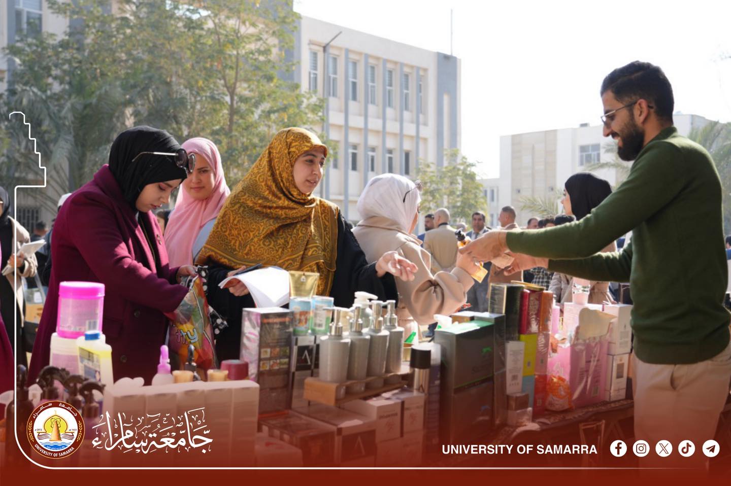 The College of Law at the University of Samarra sponsored a charity market (“bazaar”) supporting small projects, artisans, and local industries.