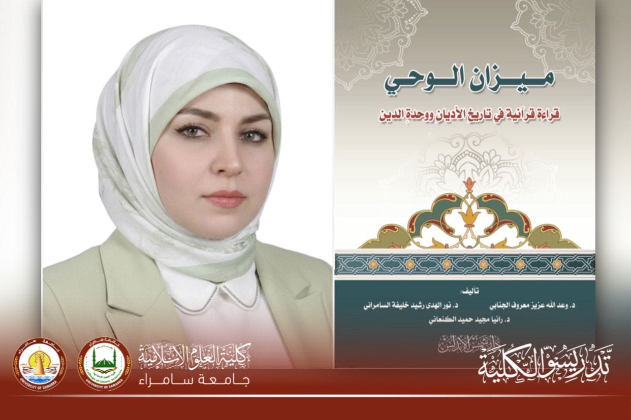 Dr. Noor Al-Huda Rasheed Khalifa, a faculty member at the College of Islamic Sciences at University of Samarra, has co-authored an academic book entitled “The Scale of Revelation: A Qur’anic Reading of the History of Religions and the Unity of Religion,” in collaboration with researchers specializing in Qur’anic studies and comparative religion.