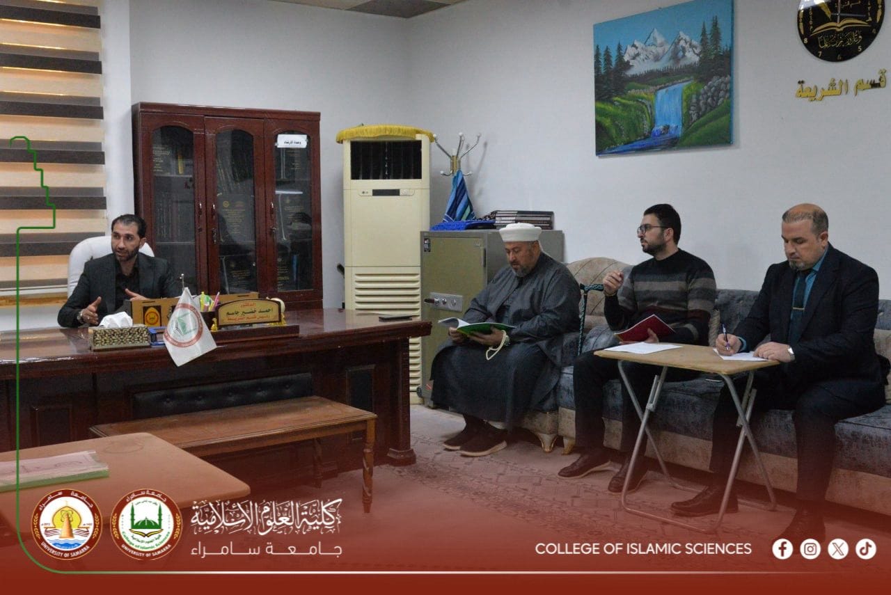 The Council of the Department of Sharia at the College of Islamic Sciences, University of Samarra, held a meeting attended by the Head of the Department and faculty members to discuss a range of academic and administrative issues aimed at developing the educational process within the department.