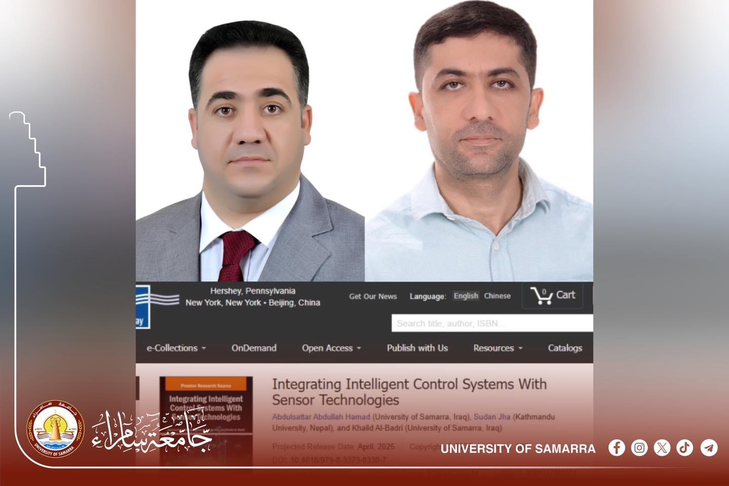 Assistant Professor Dr. Abdul Sattar Abdullah Hamad and Assistant Professor Khalid Saeed Al-Taif, faculty members at the University of Samarra, have co-authored a scientific book in collaboration with a researcher from Kathmandu University in Nepal. The book is titled “Integration of Intelligent Control Systems with Sensing Technologies.”
