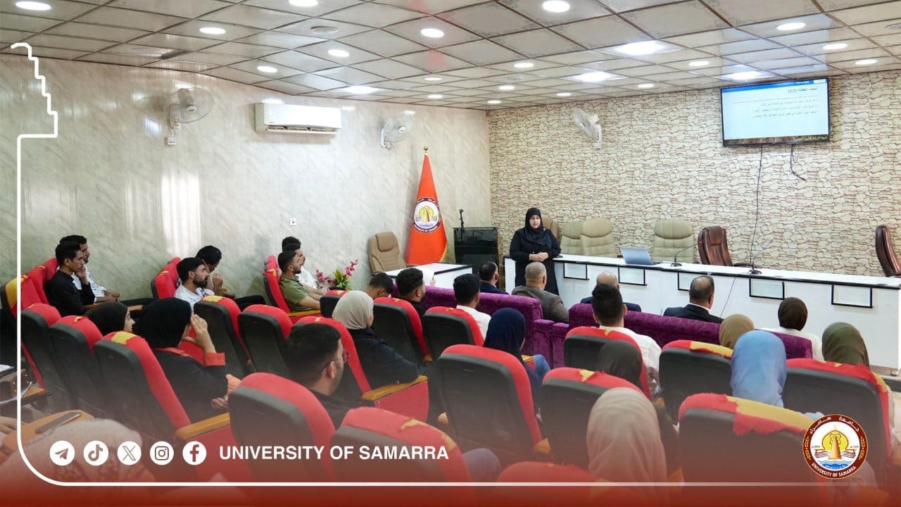 The University Psychological Guidance Division at the Rectorship of Samarra University organized an awareness symposium on “Unemployment and its Negative Effects on Social Peace,” presented by Assistant Professor Dr. Jinan Mohammed Hussein, a faculty member at the College of Education for Human Sciences, with the attendance of Vice Rector for Scientific Affairs, Professor Dr. Kamal Hussein Ahmed.