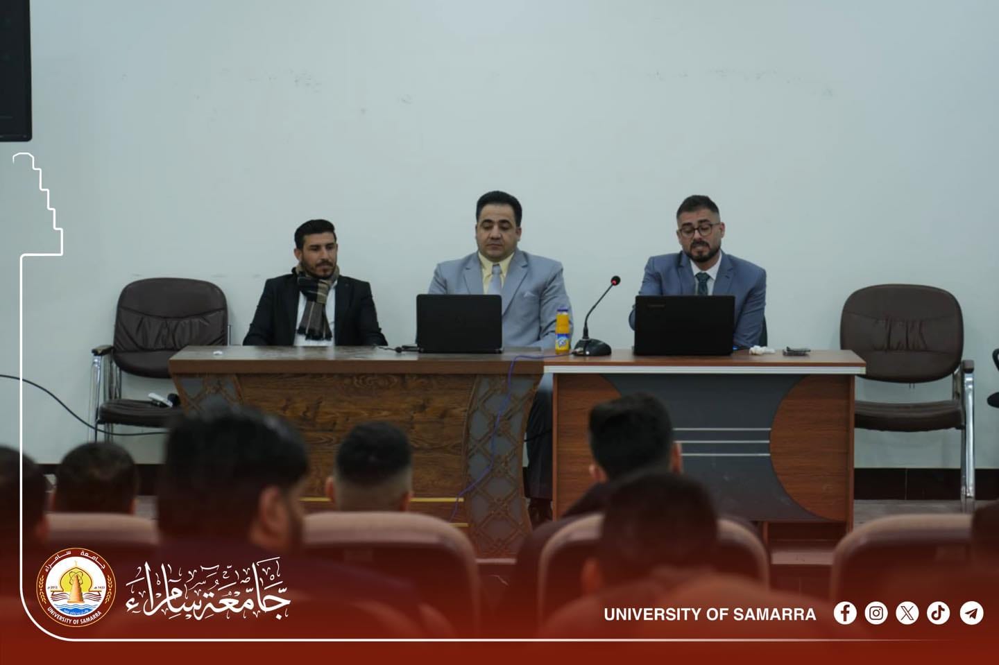 The Department of Scholarships and Cultural Relations at the Presidency of the University of Samarra organized a training workshop for faculty members, employees, and students on the “Scholarship Application Process.” The workshop was conducted by Assistant Professor Dr. Abdul Sattar Abdullah Hamad (Head of the Department), Assistant Professor Dr. Moataz Ibrahim Ali, and Dr. Abdul Rahman Hamada Saleh.