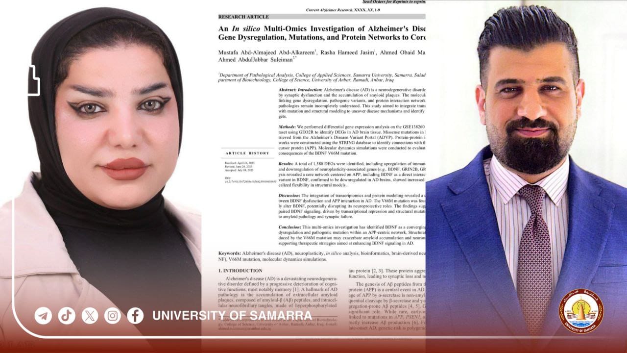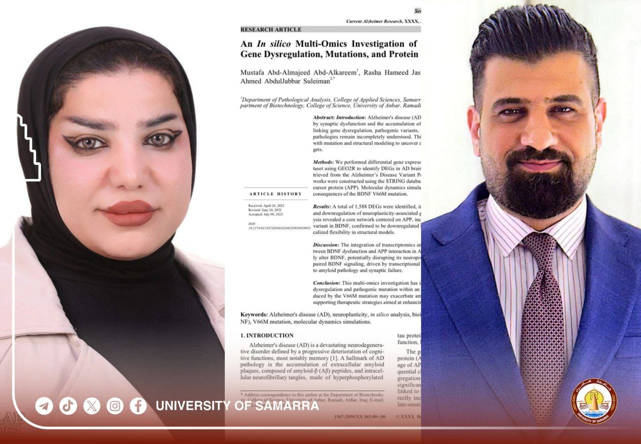 Assist. Lect. Mustafa Abdulmajeed Abdulkarim and Assist. Lect. Rasha Hameed Jassim, both faculty members at the College of Applied Sciences at the University of Samarra, published a joint scientific paper in the Current Alzheimer Research journal, which is classified as Q3 within the Scopus database.