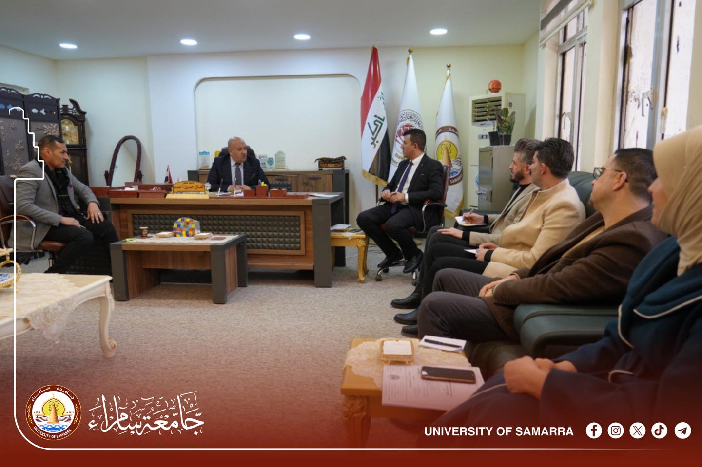 Professor Dr. Kamal Hussein Ahmed, Vice President for Scientific Affairs, chaired an extensive meeting in his office, which included the Director of the Student Affairs and Registration Department at the university presidency and the heads of registration divisions in the colleges.